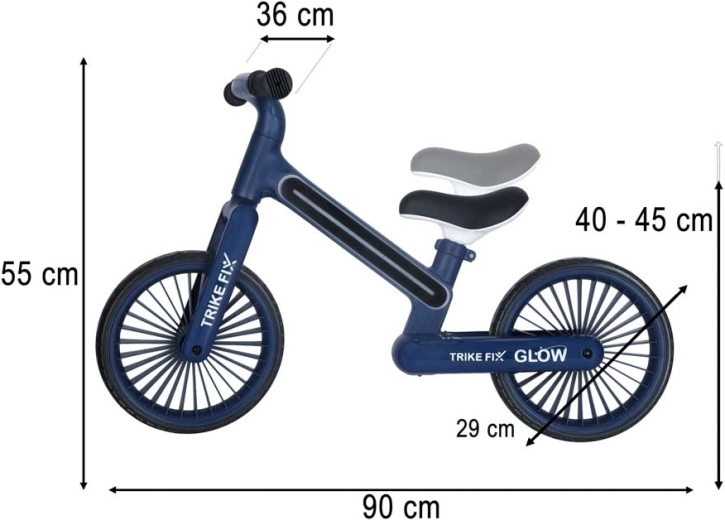 Szerokie koła EVA 12" nie wymagają pompowania, nie przebijają się i zapewniają płynną jazdę na różnych nawierzchniach. Ergonomiczne, antypoślizgowe gripy oraz miękkie, wyściełane siodełko gwarantują wygodę także na dłuższych trasach. Dzięki płynnej regulacji wysokości siodełka biegówka rośnie razem z dzieckiem i ułatwia przejście na rower z pedałami.