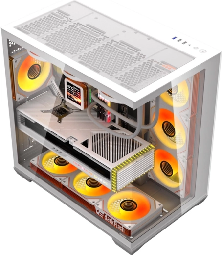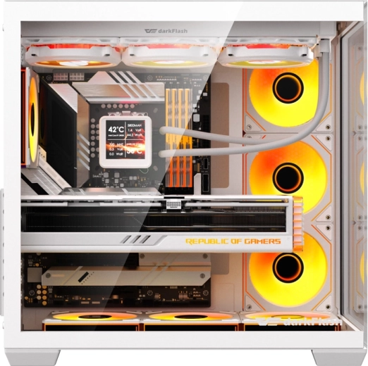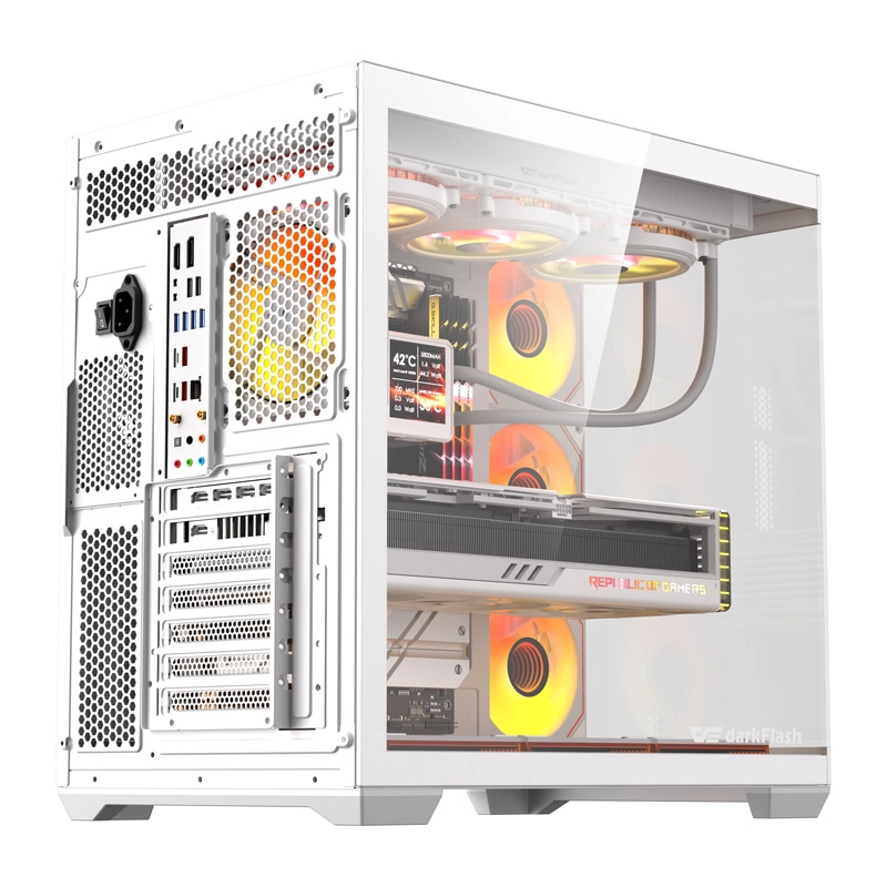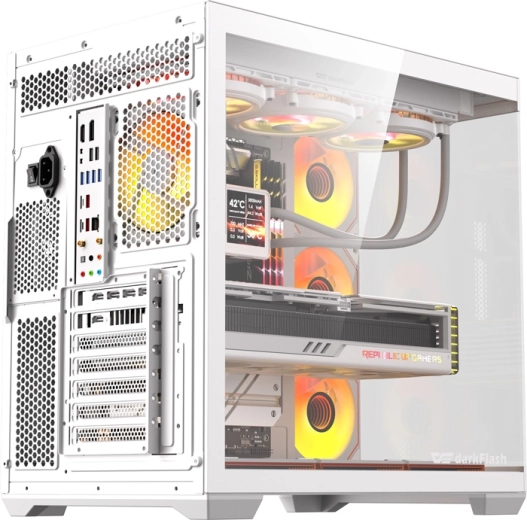 Stylowa i przestronna obudowa PC DarkFlash C280 w kolorze białym oferuje panoramiczny design 270° z panelami z hartowanego szkła, obsługę płyt aż do E‑ATX oraz montaż do 10 wentylatorów lub chłodnic AIO do 360 mm. W zestawie znajduje się już 7 fabrycznie zainstalowanych wentylatorów 120 mm dla wydajnego chłodzenia, nie brakuje pionowego montażu GPU, znakomitego zarządzania okablowaniem i praktycznego I/O z USB 3.0.