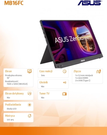 Przenośny monitor 16" IPS WUXGA 16:10 z USB‑C i mini HDMI
