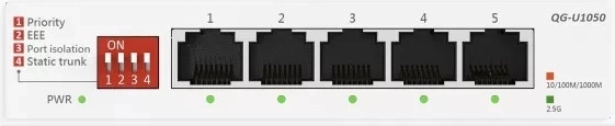 Przyspiesz domową i firmową sieć dzięki 5‑portowemu, niezarządzalnemu przełącznikowi 2.5G QG-U1050. Oferuje instalację plug and play, ciche wykonanie biurkowe oraz cztery inteligentne tryby (priorytet, EEE, izolacja portów, statyczny trunk) dla wyższej wydajności, bezpieczeństwa i oszczędności energii. Wykorzystaj istniejące okablowanie CAT5e i odblokuj pełen potencjał Wi‑Fi 6/7, NAS, streamingu 4K i komputerów gamingowych.