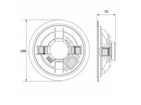 Dwudrożna konstrukcja koncentryczna (70–20 kHz) poprawia czytelność mowy i zapewnia zrównoważone brzmienie muzyki w instalacjach strefowych.