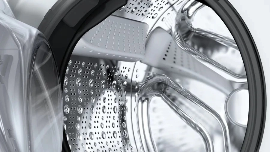 Specjalnie profilowane ścianki boczne zwiększają sztywność konstrukcji, tłumią wibracje i redukują hałas podczas prania i wirowania. Twój dom pozostanie spokojny nawet przy pełnym obciążeniu.