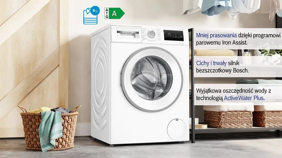 Duże drzwi, czytelny panel sterowania oraz szeroki wybór programów do różnych tkanin gwarantują doskonałe efekty prania bez wysiłku.
