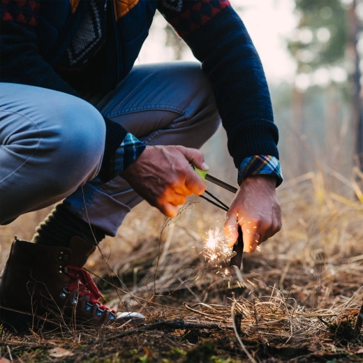 Pręt ferrocerowy generuje intensywne iskry, które z łatwością rozpalą hubkę nawet w trudnych warunkach. Niezawodne rozpoczęcie ognia przy wietrze i wilgoci.