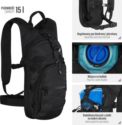 - Praktyczna pojemność 15 l – wszystko, co potrzebne na jednodniowe wypady