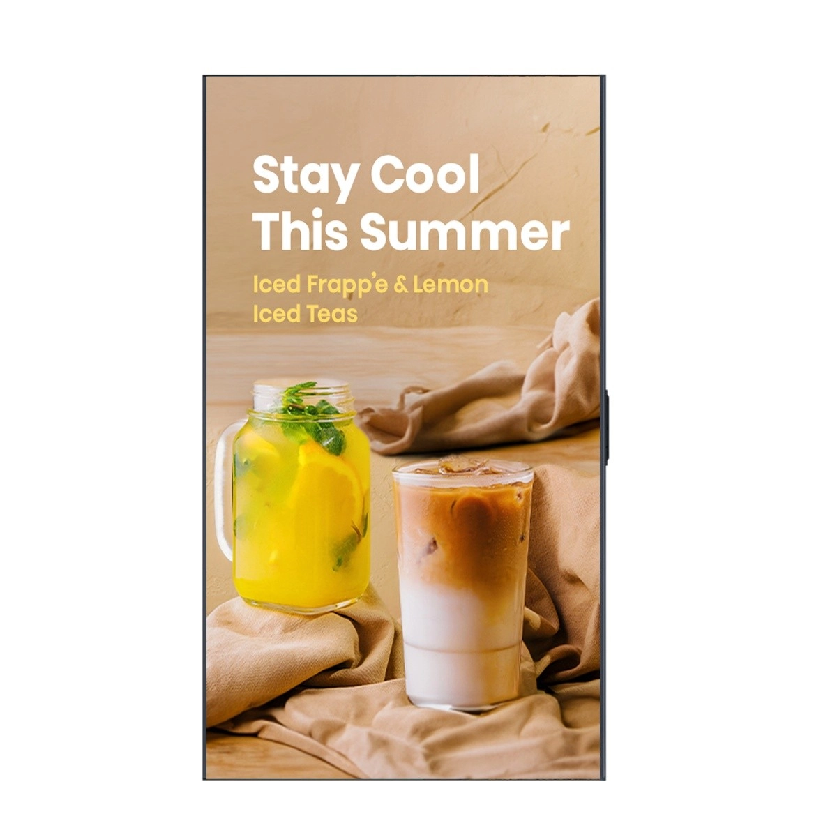 Wyświetlacz został zaprojektowany do niezawodnej pracy 16/7, więc z łatwością sprosta całodniowemu zastosowaniu w sklepach, lobby, biurach czy placówkach edukacyjnych. Eleganckie, wąskie ramki oraz smukła obudowa pasują do nowoczesnych wnętrz i ułatwiają instalacje wielopanelowe.