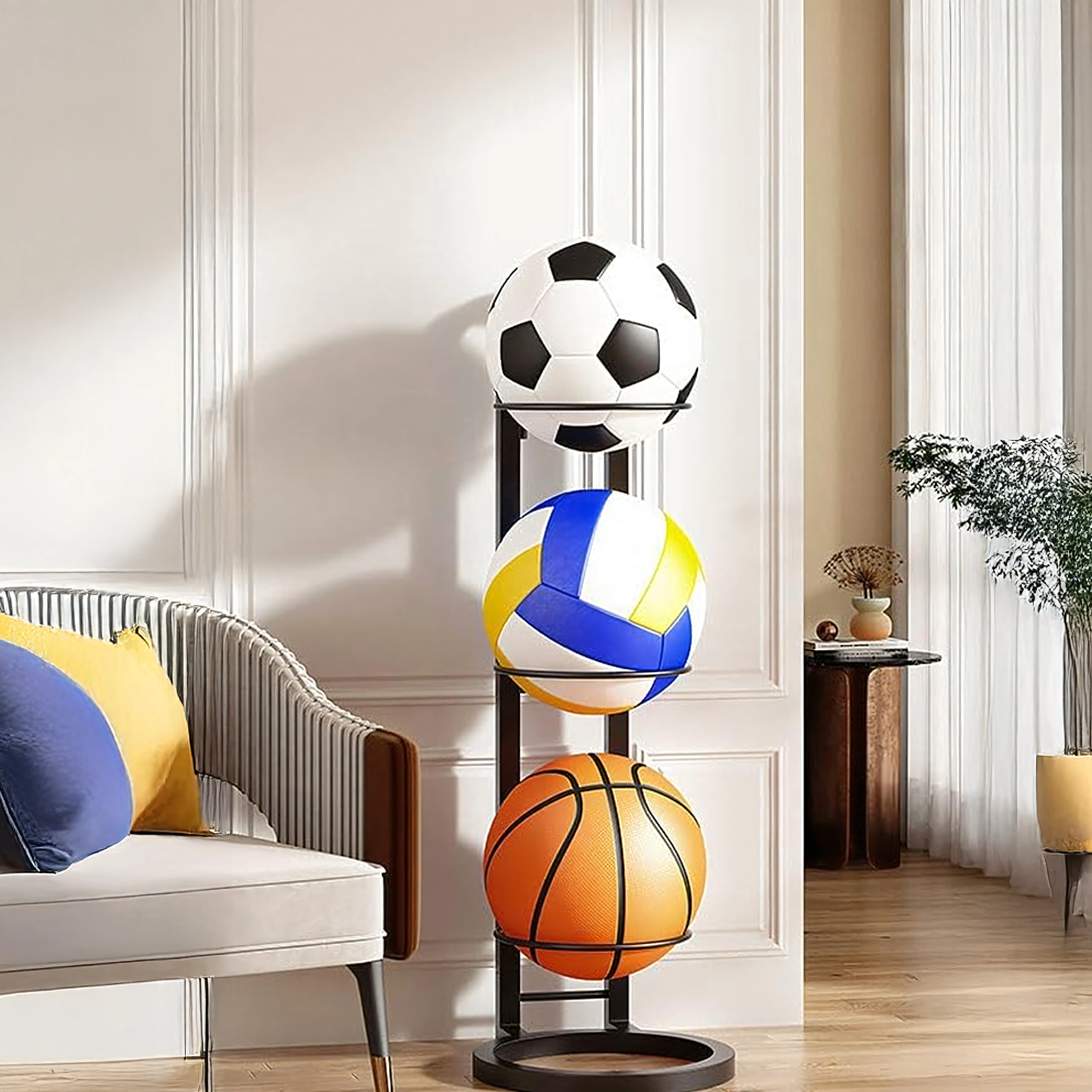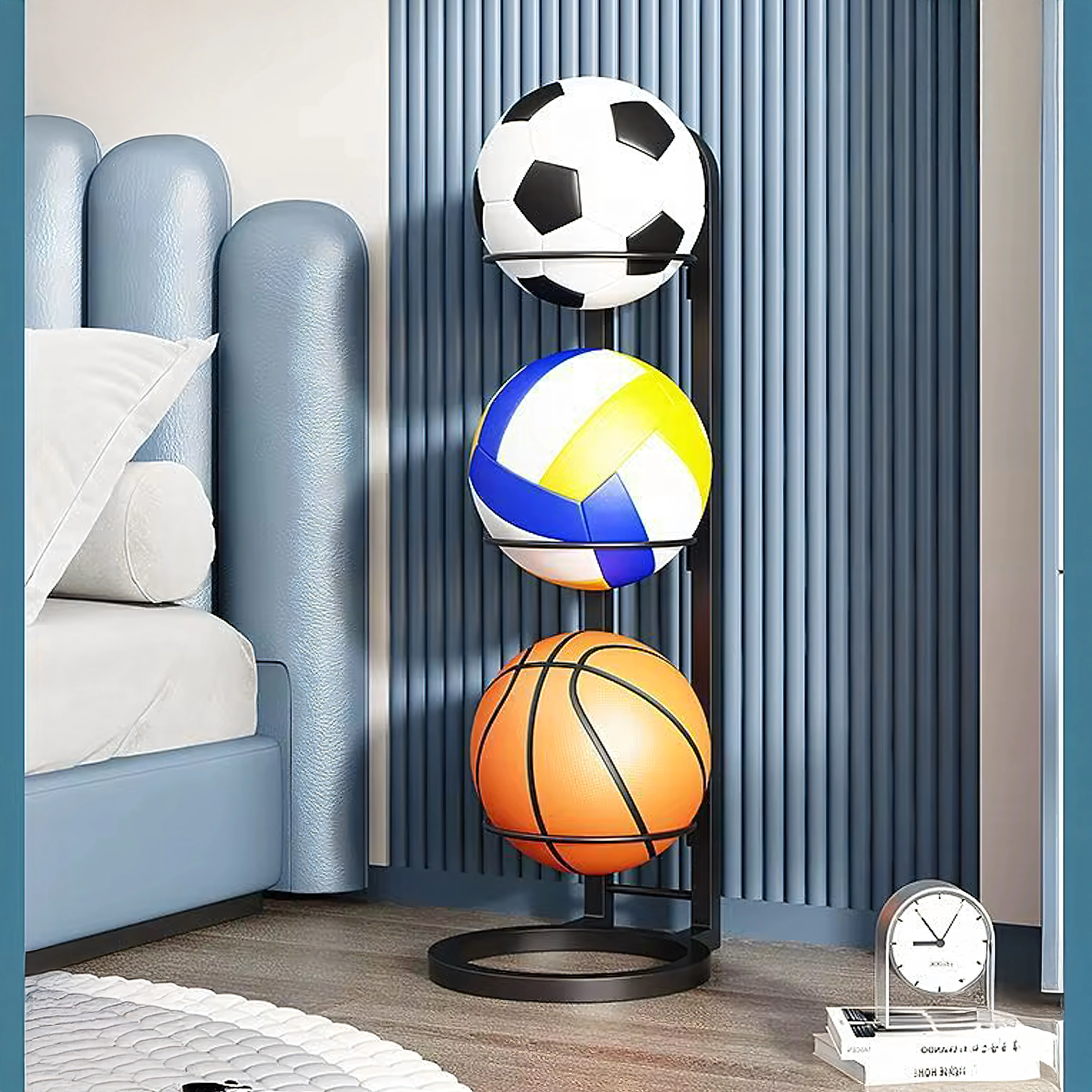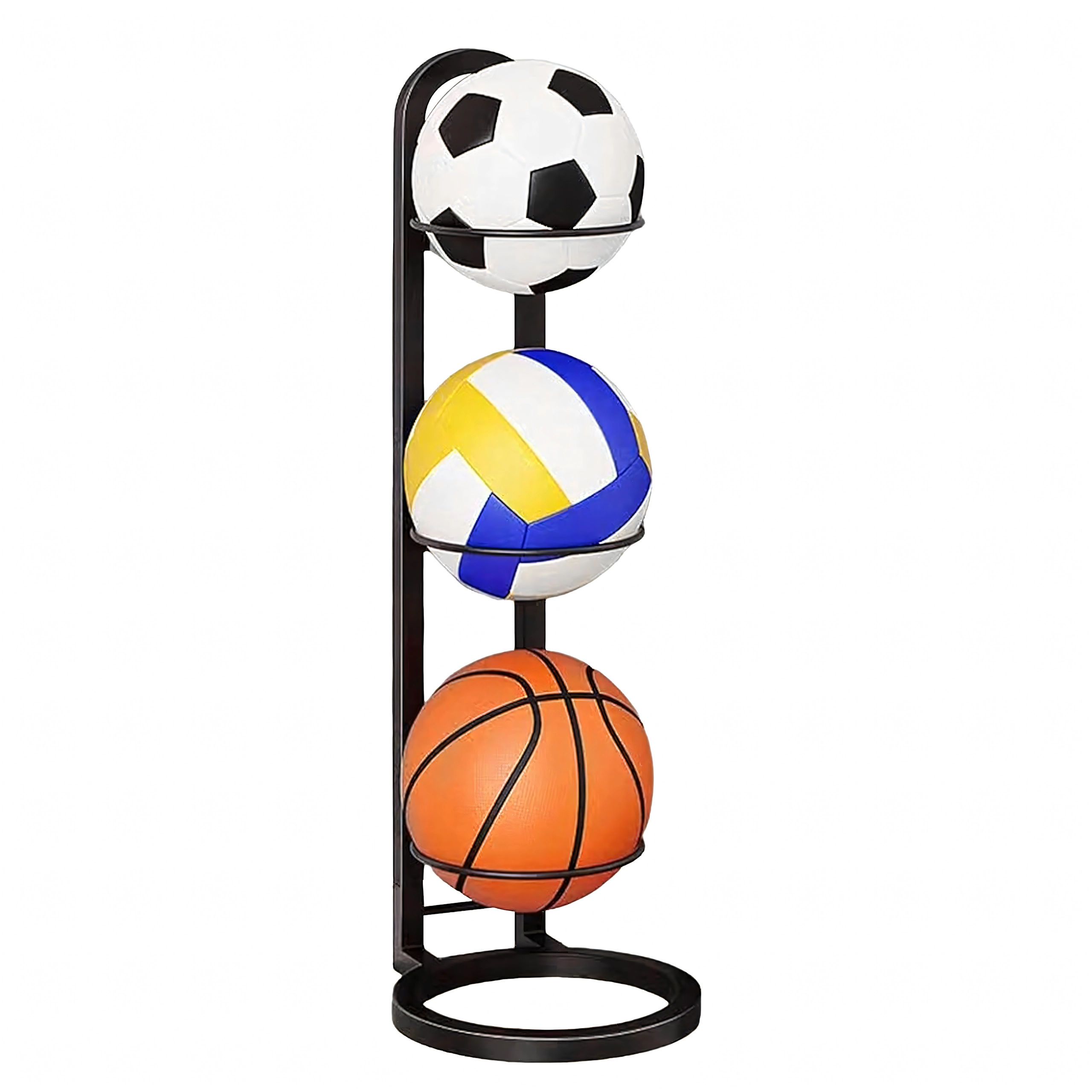 Utrzymaj sprzęt sportowy w jednym miejscu dzięki eleganckiemu stojakowi na piłki. Ten pionowy organizer oferuje oszczędność miejsca, szybki dostęp oraz stabilną metalową konstrukcję do bezpiecznego przechowywania piłki do koszykówki, piłki nożnej czy siatkówki.