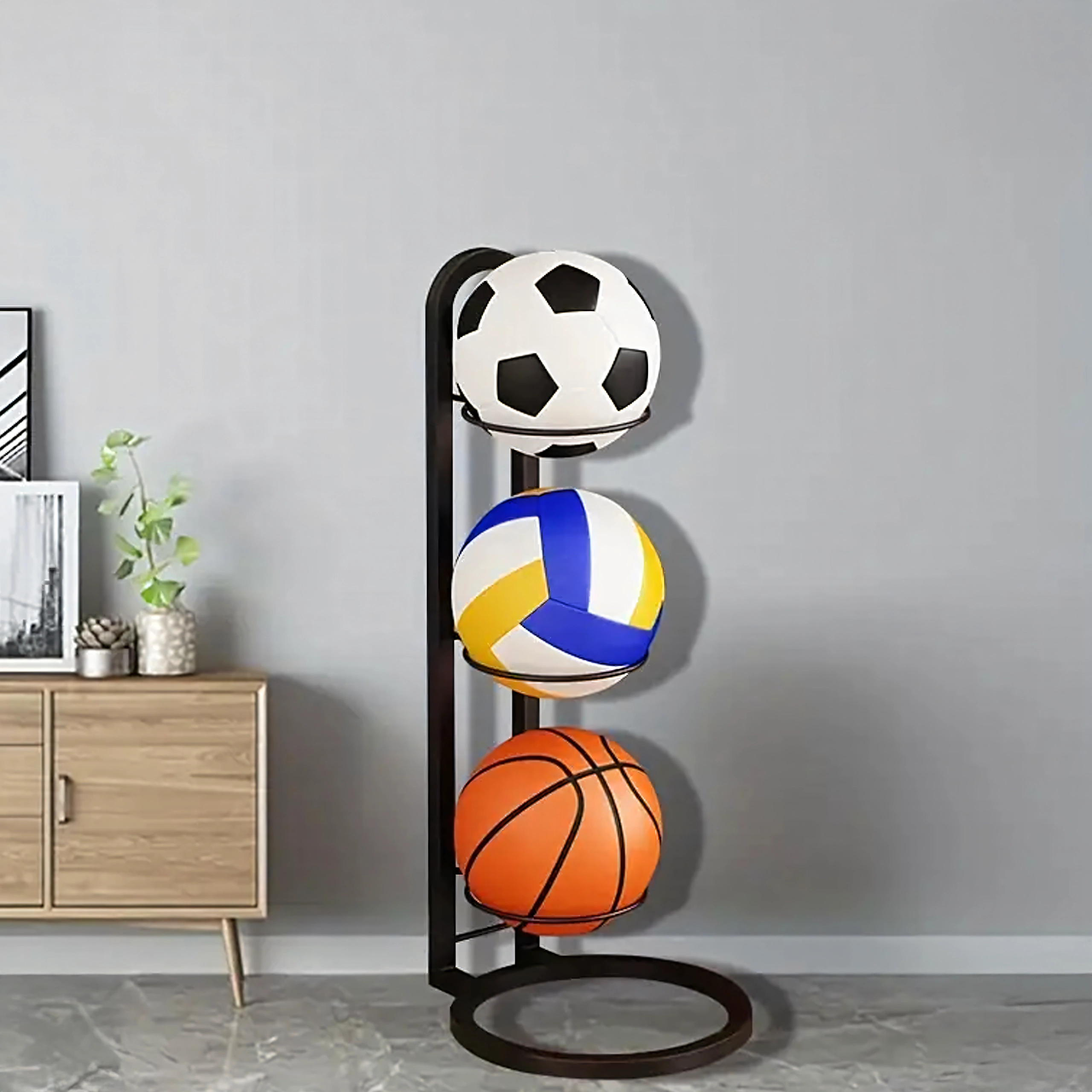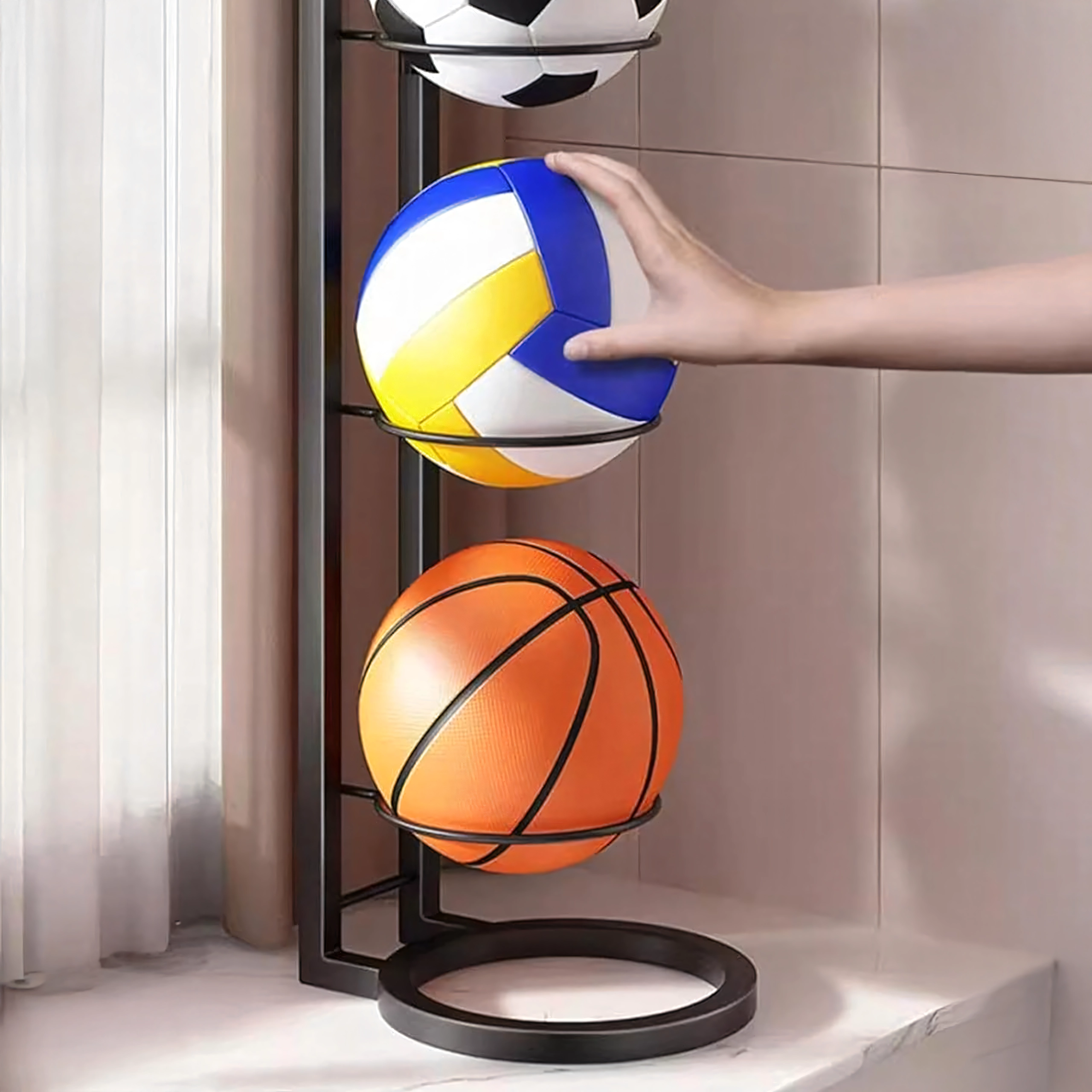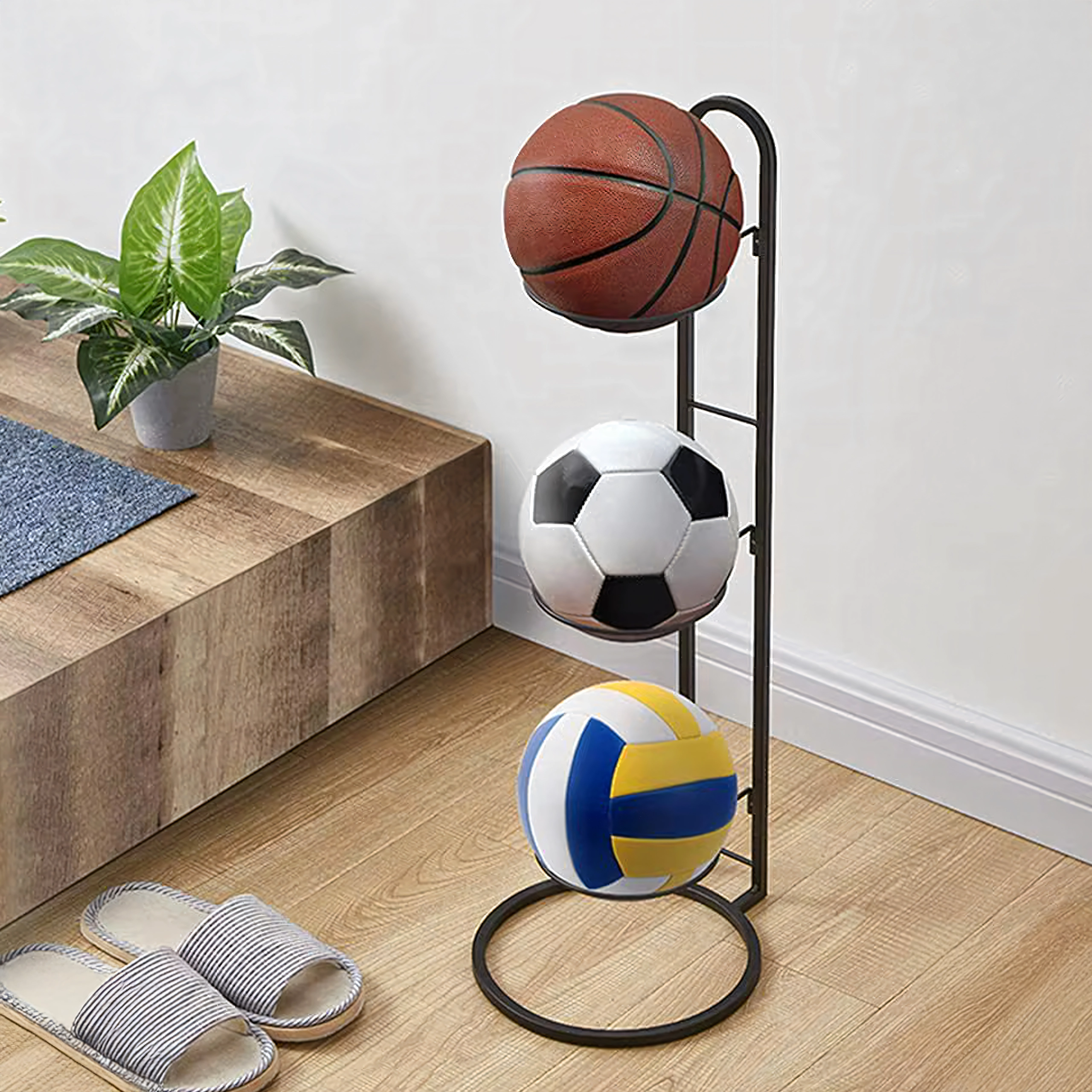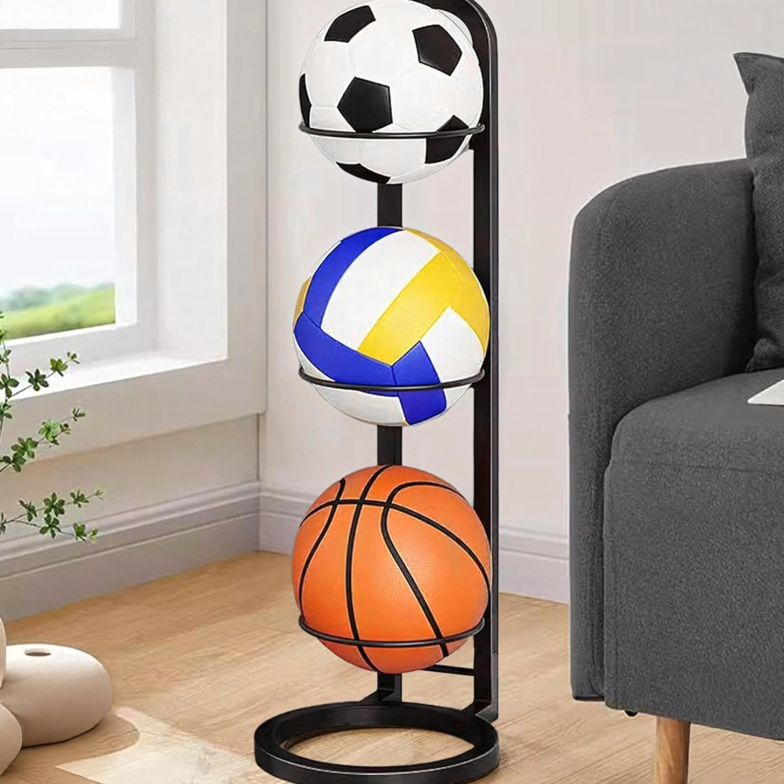 Utrzymaj sprzęt sportowy w jednym miejscu dzięki eleganckiemu stojakowi na piłki. Ten pionowy organizer oferuje oszczędność miejsca, szybki dostęp oraz stabilną metalową konstrukcję do bezpiecznego przechowywania piłki do koszykówki, piłki nożnej czy siatkówki.