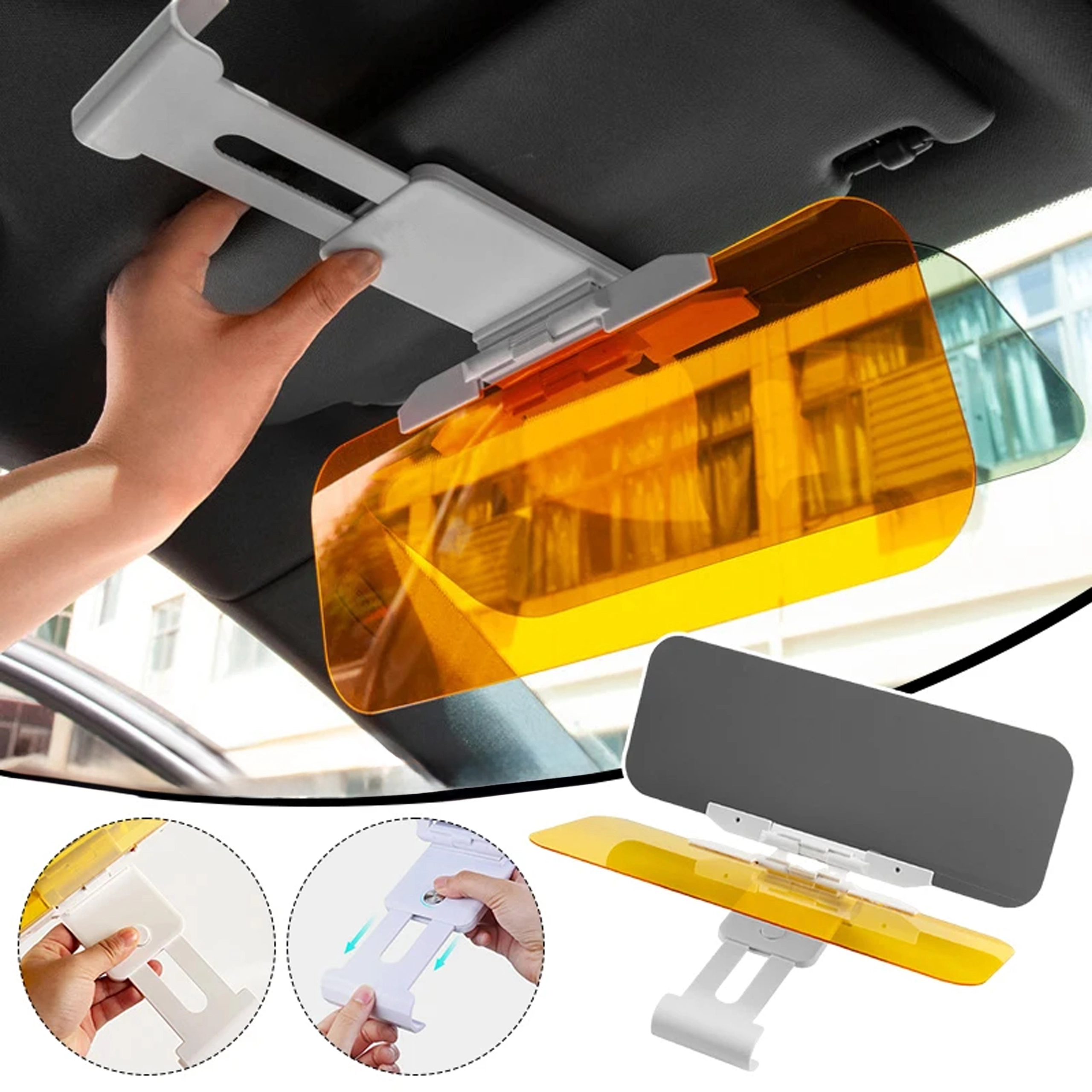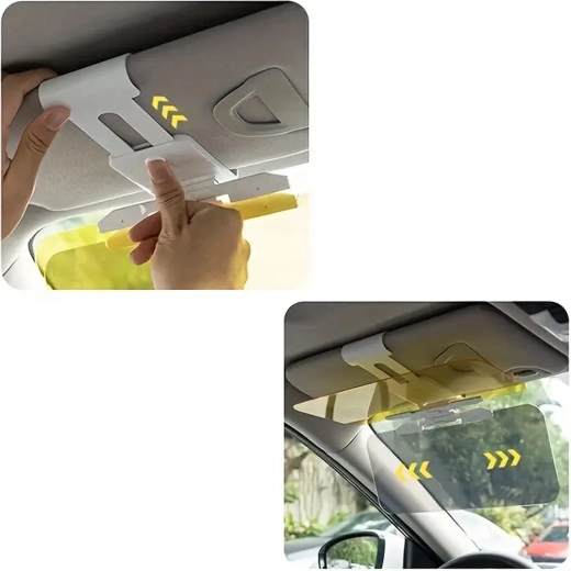 Praktyczna uniwersalna osłona przeciwoślepieniowa do samochodu z panelami 2w1 na dzień i noc zwiększa bezpieczeństwo i komfort za kierownicą. Szary panel tłumi ostre światło słoneczne w dzień, żółty panel redukuje olśnienie reflektorami w nocy. Łatwe mocowanie na klips do istniejącej osłony przeciwsłonecznej, szybkie opuszczanie jednym ruchem i poprawiona widoczność bez zmęczenia oczu podczas jazdy.
