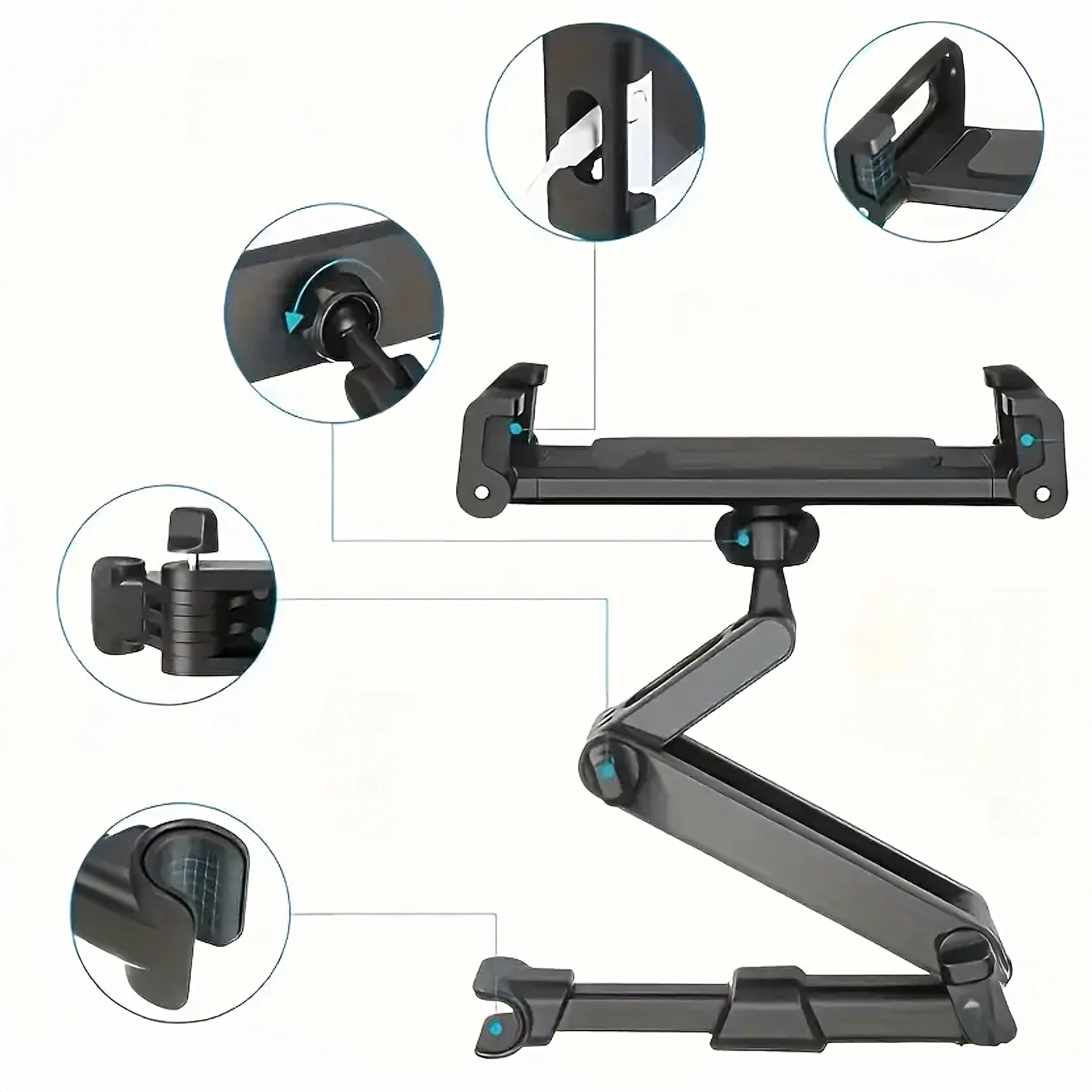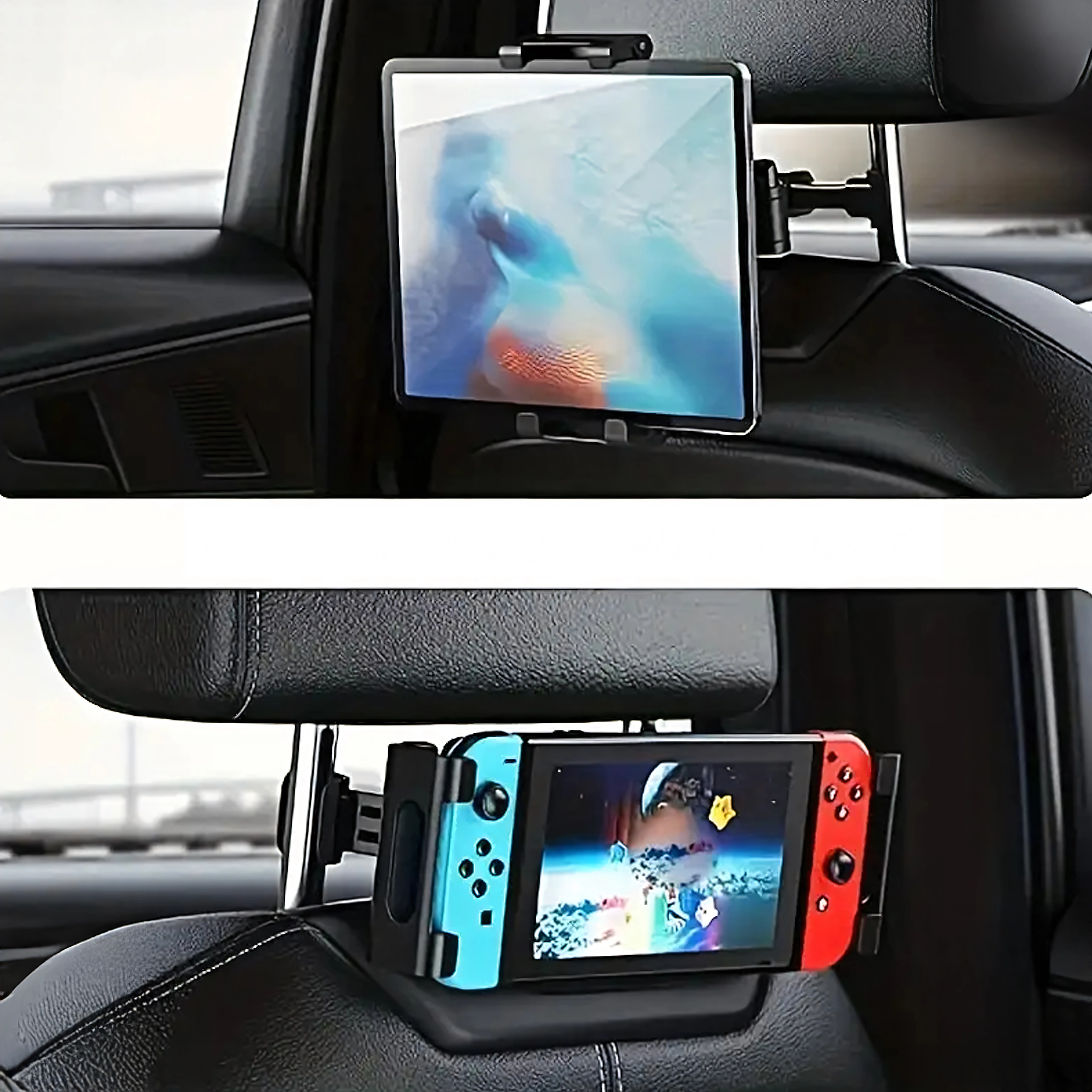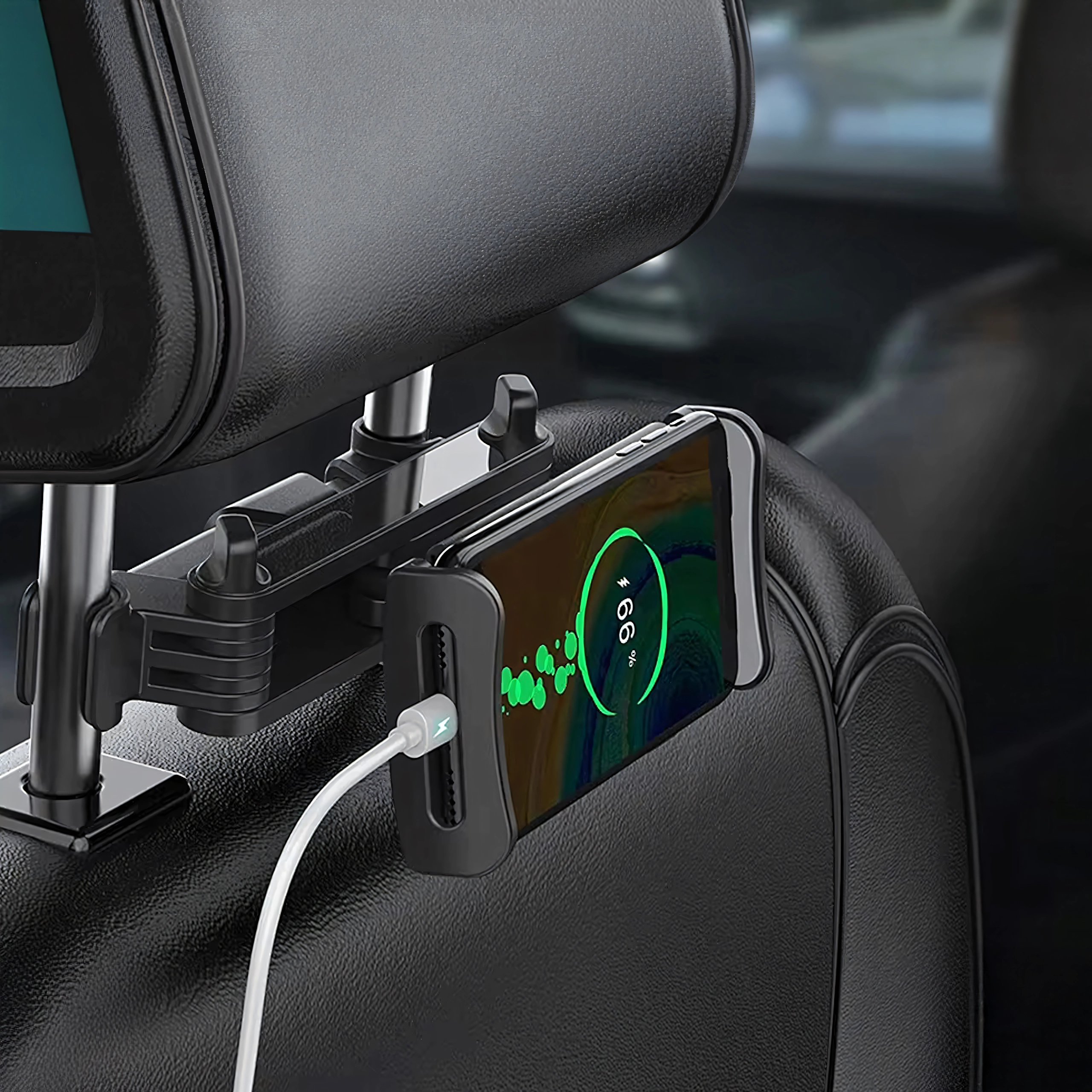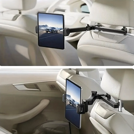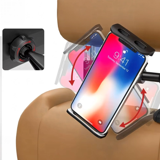 Uniwersalny uchwyt na zagłówek zamienia tylne siedzenie w multimedialny kącik. Dzięki przegubowej konstrukcji i głowicy kulowej oferuje obrót o 360°, szeroką kompatybilność z telefonami i tabletami oraz stabilne mocowanie bez drżenia – idealny do filmów, gier i nauki w podróży.