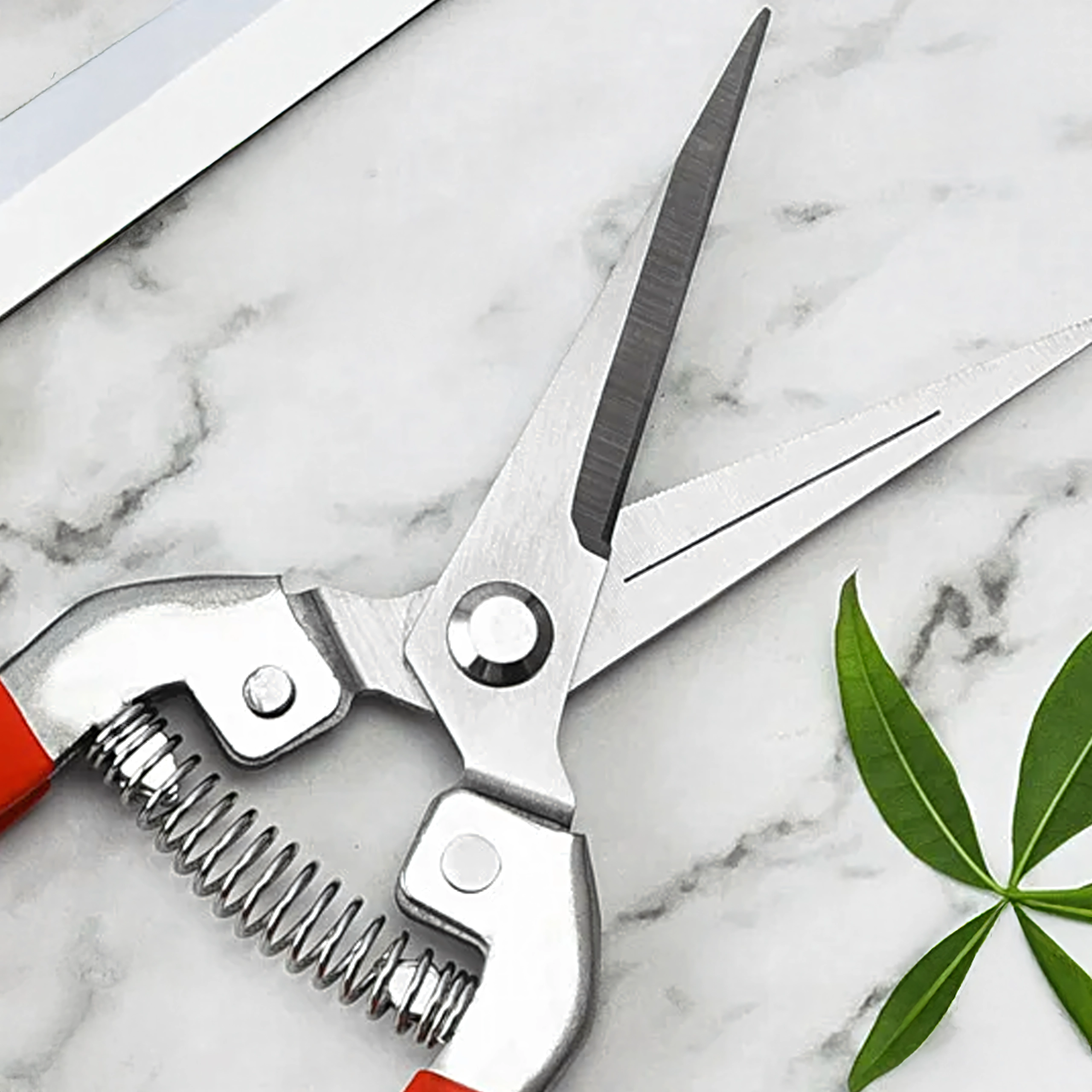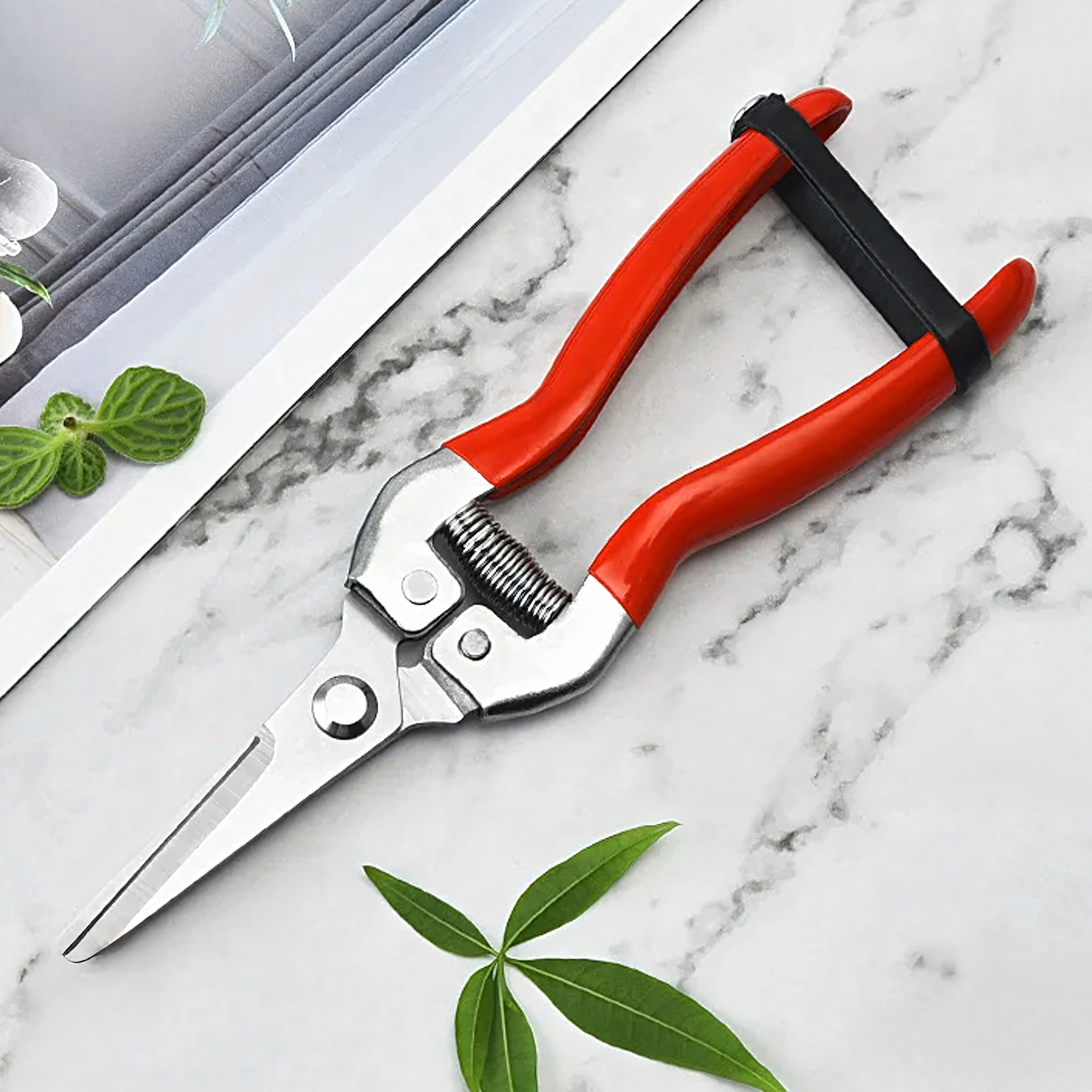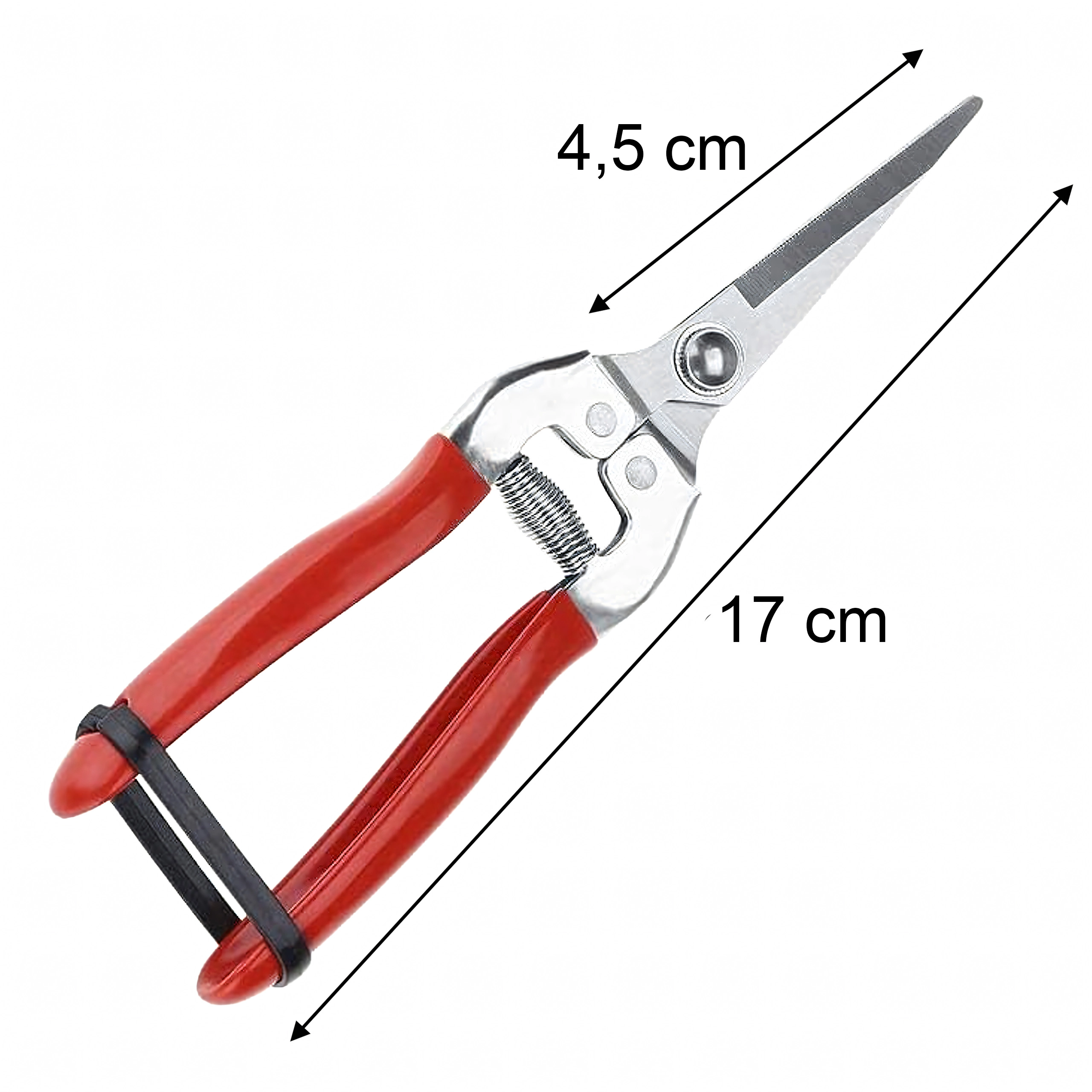 - Precyzyjne cięcie: wąskie, nierdzewne ostrza do czystych cięć łodyg i delikatnych gałązek.