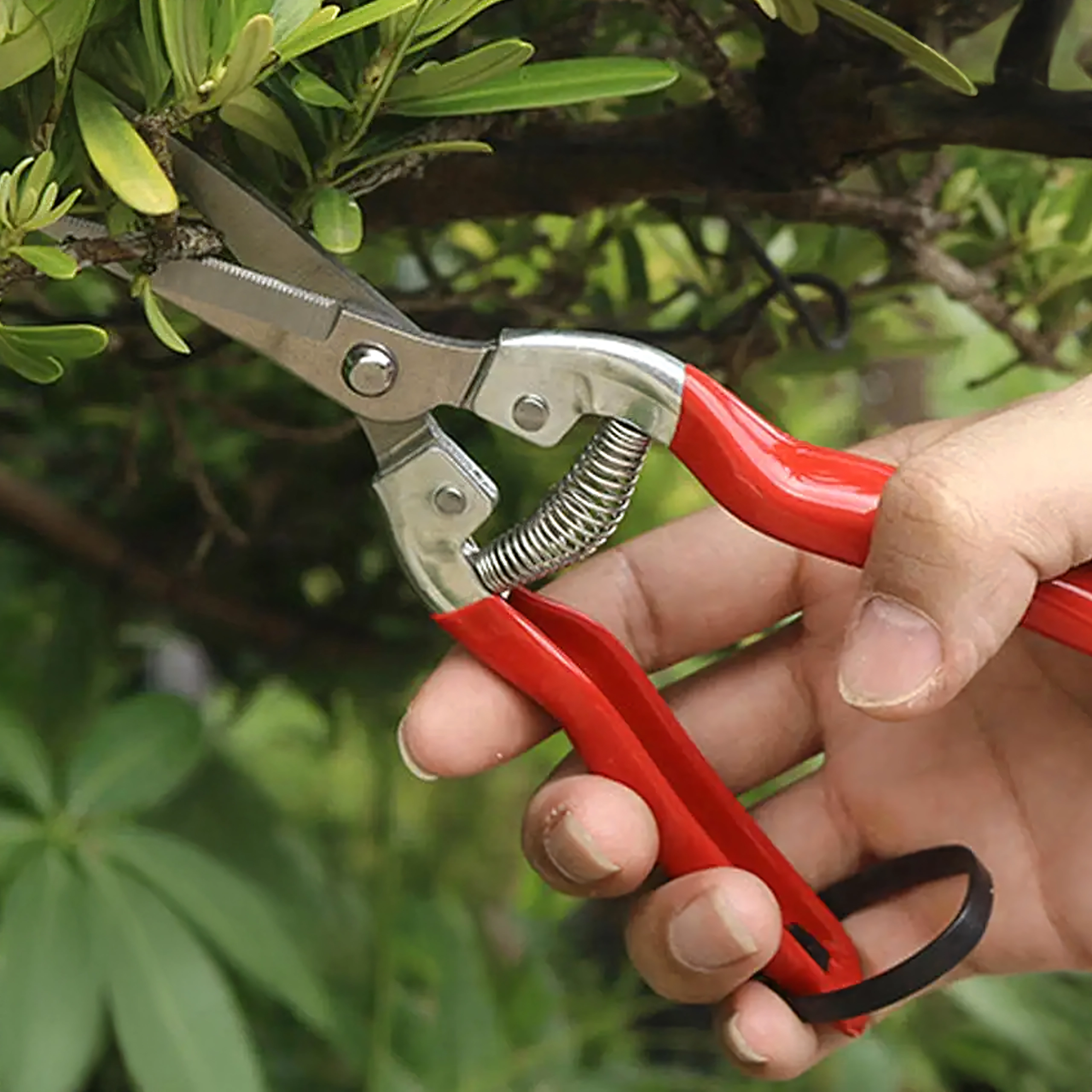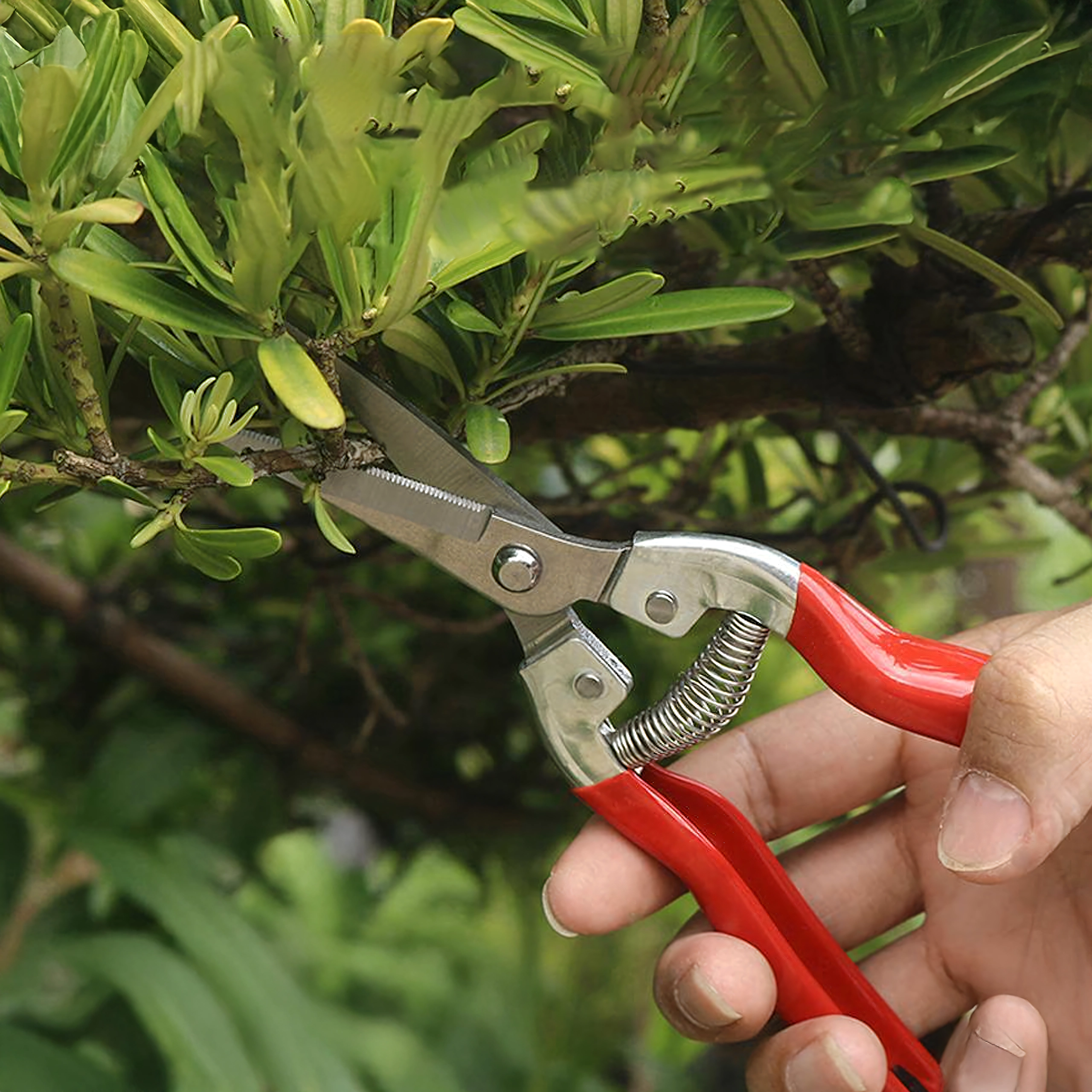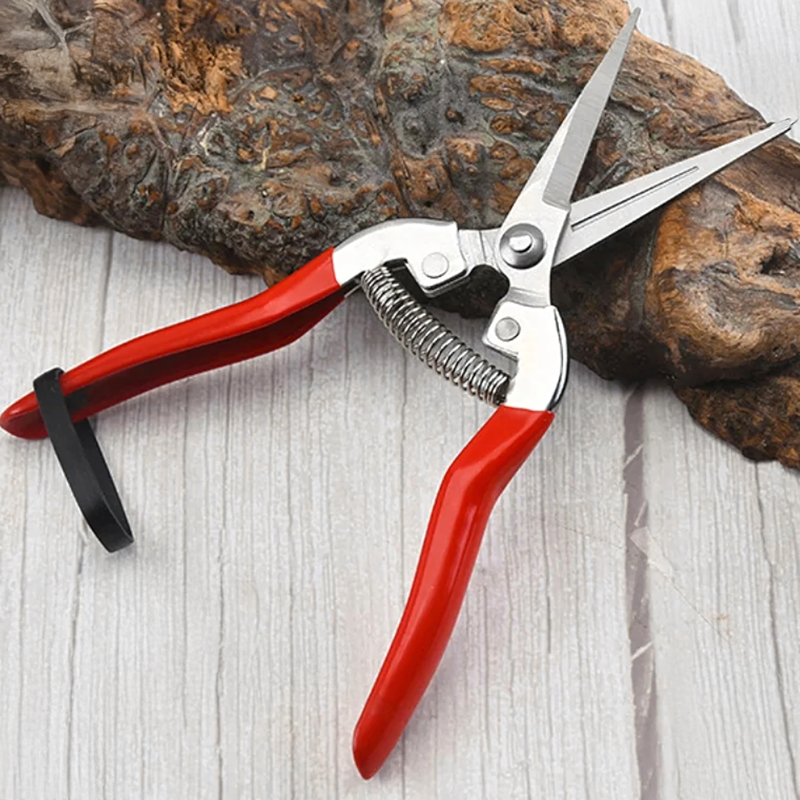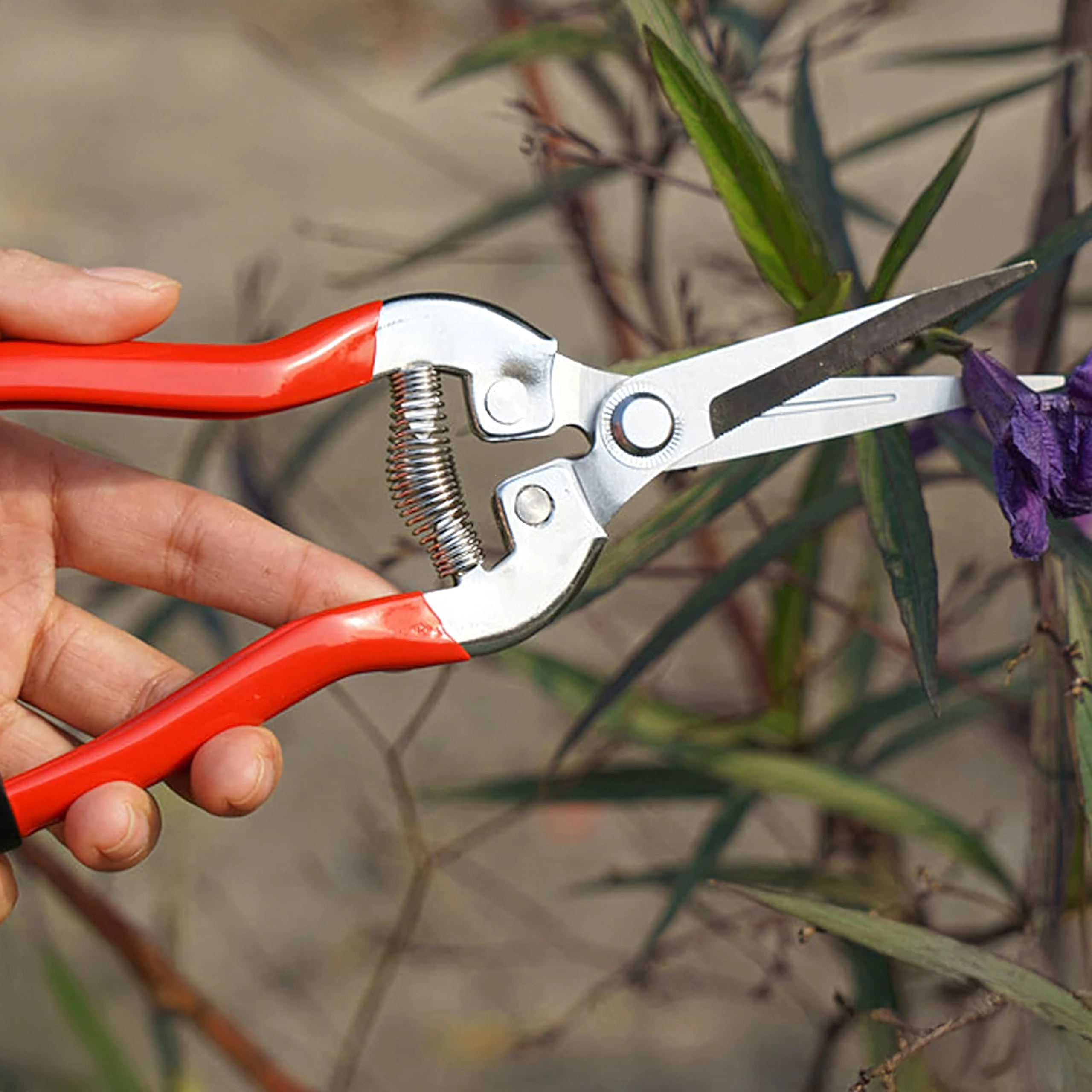 - Precyzyjne cięcie: wąskie, nierdzewne ostrza do czystych cięć łodyg i delikatnych gałązek.