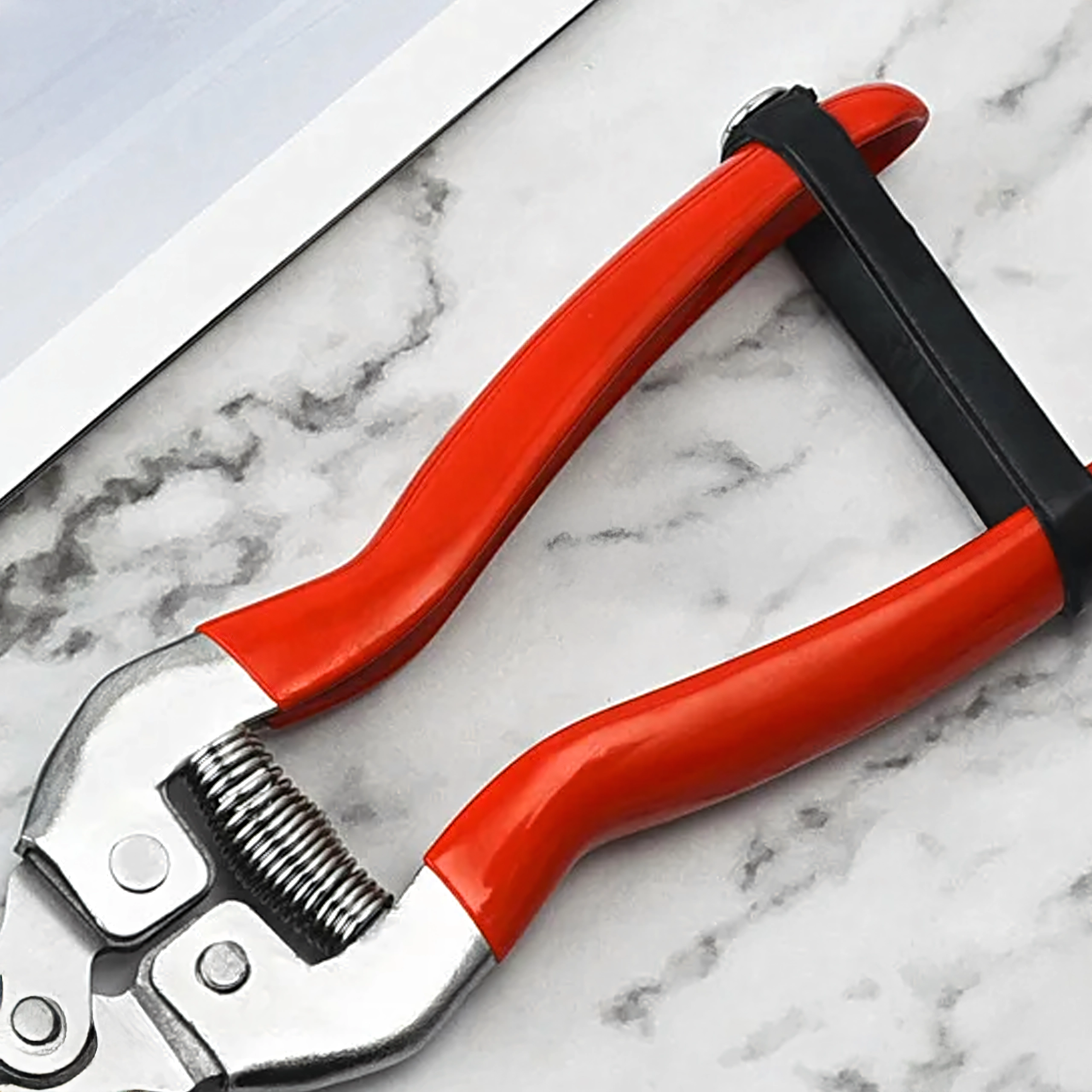 Zintegrowana sprężyna automatycznie otwiera rękojeści, co przyspiesza powtarzalne cięcia i zmniejsza zmęczenie dłoni.