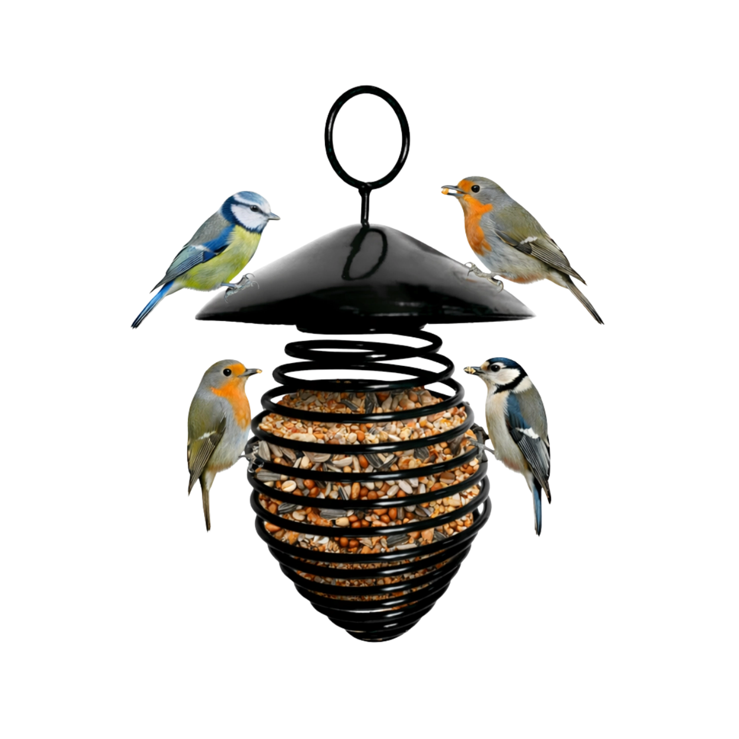 Wytrzymały karmnik z drutu i blachy metalowej z wykończeniem malowanym proszkowo jest przeznaczony na kule tłuszczowe. Otwarta konstrukcja ułatwia dostęp ptakom oraz czyszczenie i uzupełnianie. Czarna kolorystyka prezentuje się subtelnie i pasuje do każdego otoczenia zewnętrznego.