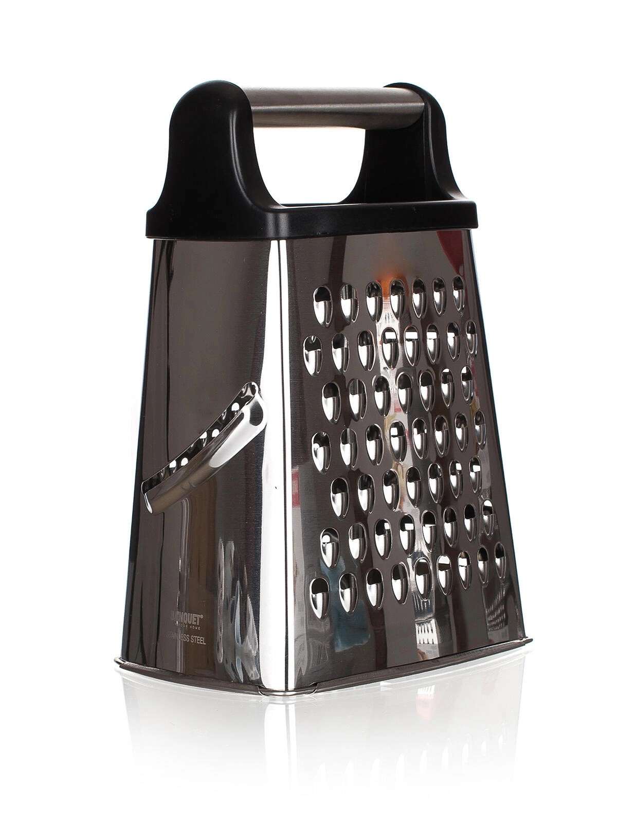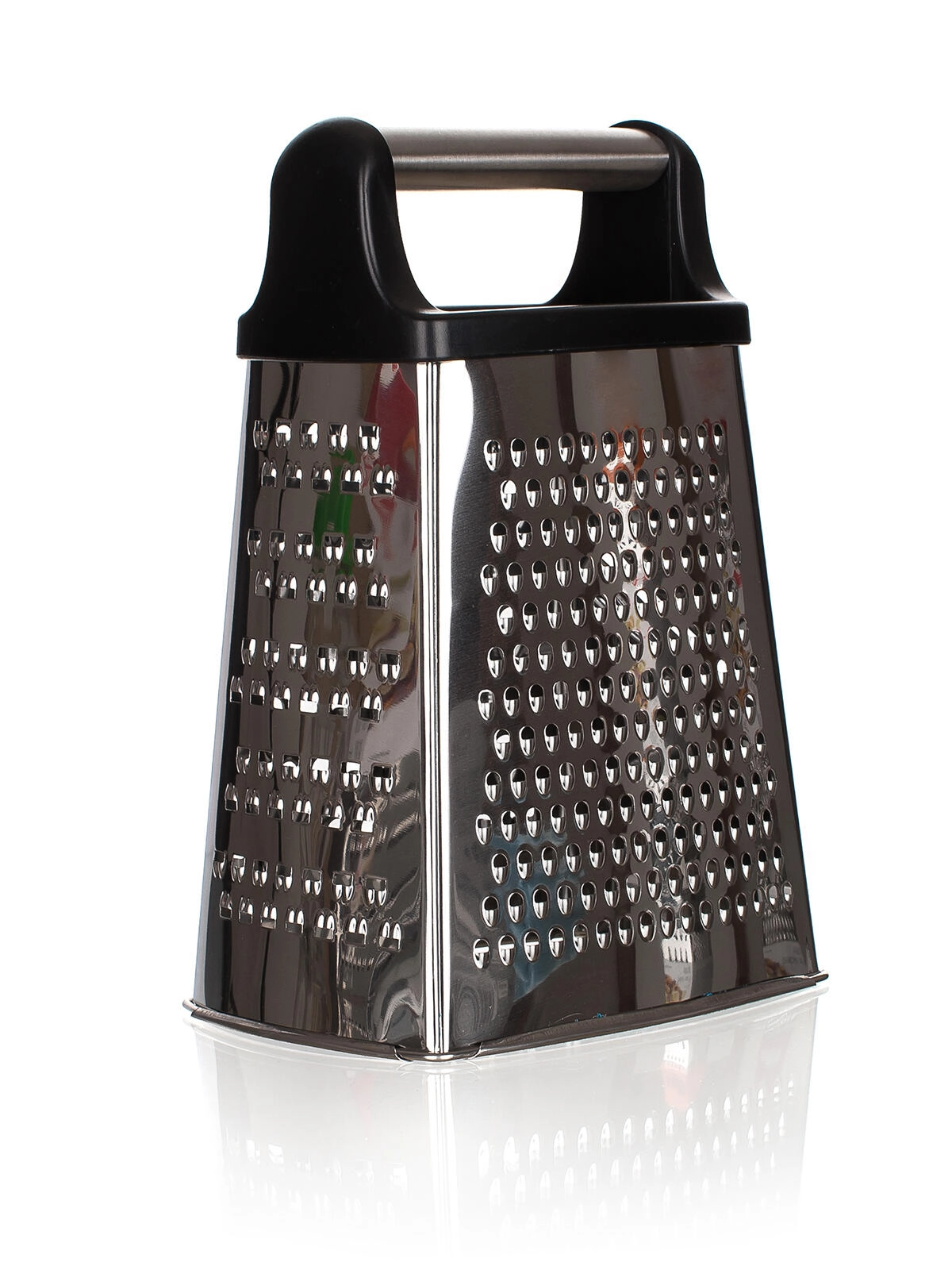 Stabilny kształt A zapewnia pewne ustawienie na blacie, a gładka, nierdzewna powierzchnia szybko i łatwo się czyści. Tarka jest idealna do sera, warzyw, owoców i czekolady – świetny wybór do każdej domowej kuchni.