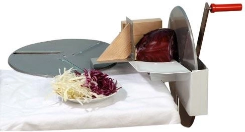 Praktyczna ręczna szatkownica do kapusty do szybkiego i równomiernego szatkowania bezpośrednio przy stole. Dzięki obrotowemu mechanizmowi, 5 ostrym nożom oraz solidnemu zaciskowi mocującemu przygotujesz kapustę łatwo i bezpiecznie. Jest rozbieralna, kompaktowa i łatwa do umycia.