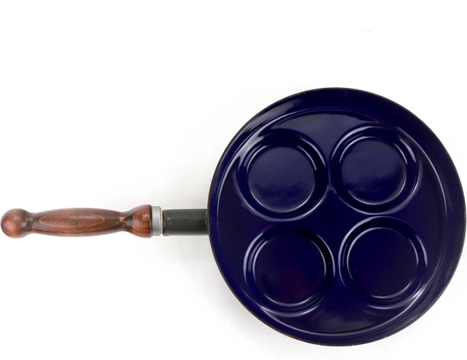 Tradycyjna emaliowana patelnia do racuchów o średnicy 24 cm do równomiernego i szybkiego smażenia placuszków i jajek. Dzięki wysokiej jakości emalii łatwo się czyści, jest bezpieczna dla zdrowia, odpowiednia na indukcję oraz wszystkie pozostałe typy kuchenek, a dzięki ergonomicznej drewnianej rączce pewnie leży w dłoni.