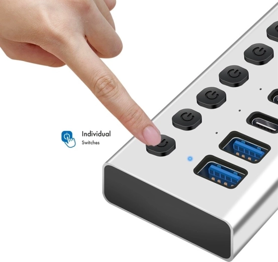 Hub USB 7× portów z wyłącznikami i kablem 2 w 1