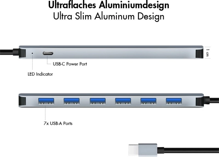 Kompaktowe aluminiowe chassis o wysokości zaledwie 1 cm świetnie odprowadza ciepło i znosi trudy codziennego noszenia. W zestawie zasilanie USB‑C 20 W, które zapewnia stabilną pracę i niezawodne zasilanie podłączonych peryferiów bez przerw.