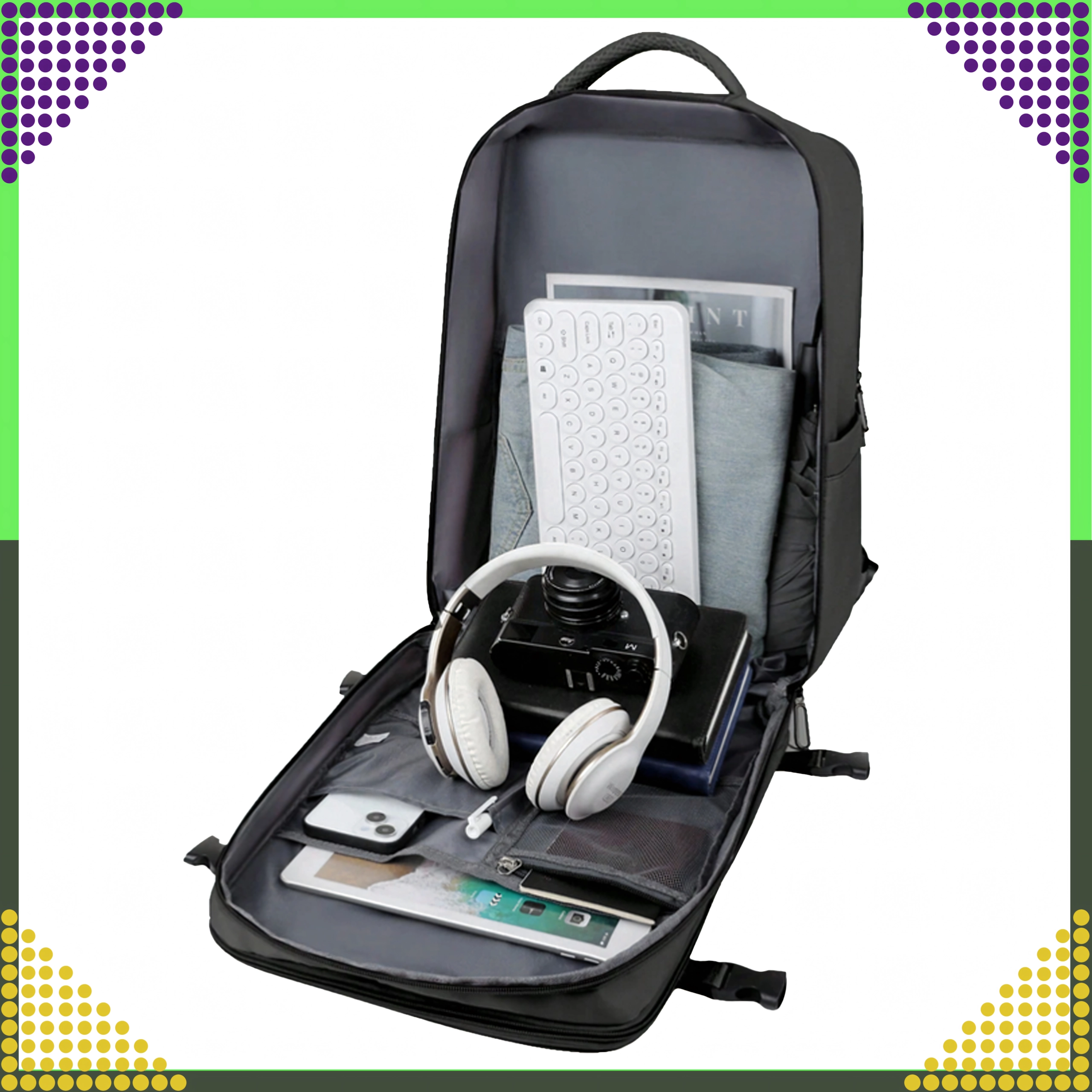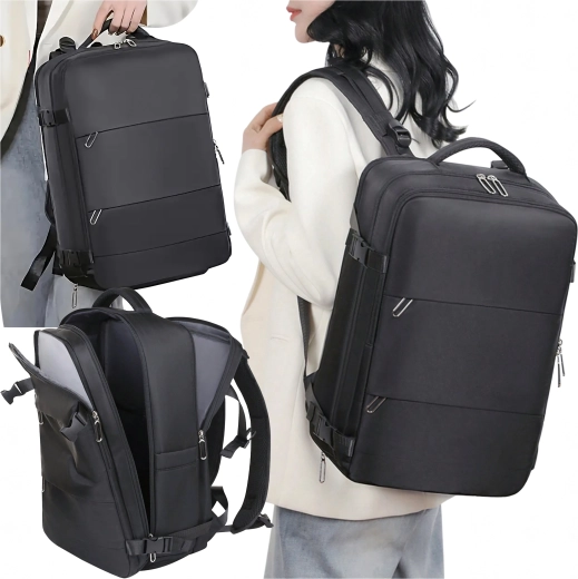 Ten uniwersalny plecak podróżny łączy funkcjonalność bagażu podręcznego i wygodę klasycznego plecaka. Wodoodporny nylon/Oxford z wytrzymałymi zamkami chroni Twoje rzeczy przed wilgocią i zabrudzeniami, a usztywniony kształt oraz liczne sekcje utrzymują wszystko w przejrzystym porządku. Główna komora otwiera się do 180° jak walizka, co ułatwia pakowanie.