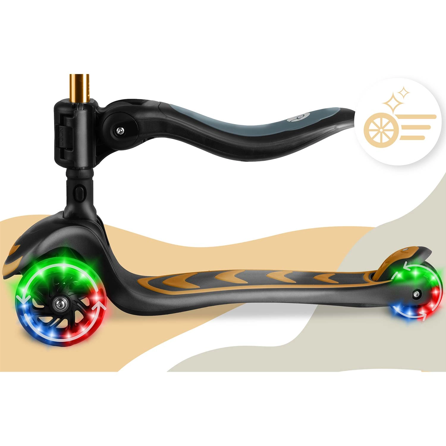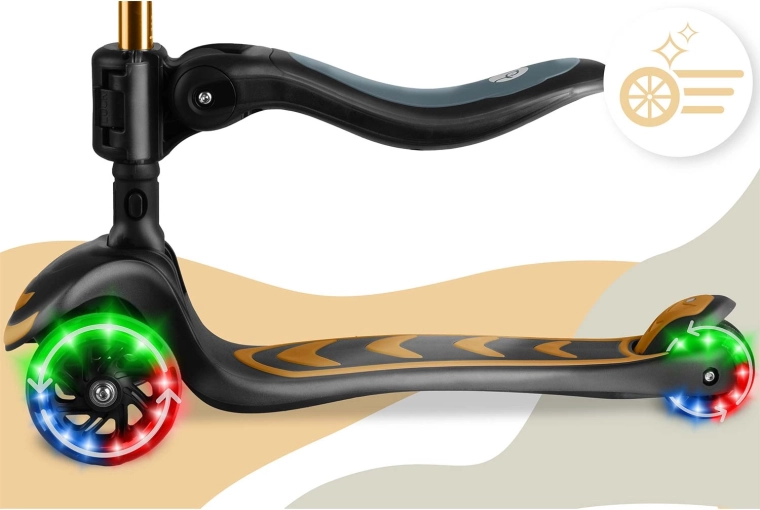 Konstrukcja „rośnie wraz z dzieckiem” dzięki regulowanej wysokości kierownicy oraz regulowanemu, odpinanemu siedzisku, które łatwo dopasować do szybkiego wzrostu malucha. Świecące kółka LED z dynamem zapalają się podczas jazdy – bez potrzeby użycia baterii – zwiększając widoczność i frajdę.