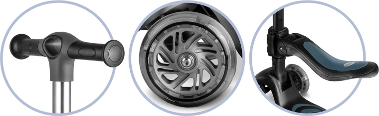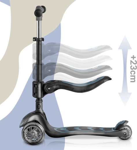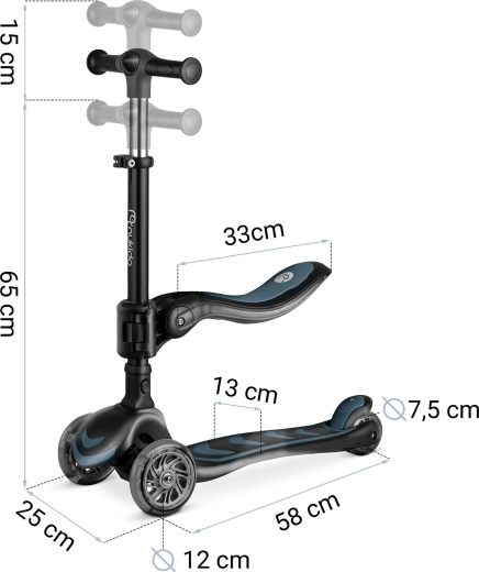 Trzystopniowa regulacja wysokości kierownicy oraz regulowane, odpinane siedzisko pozwalają dopasować hulajnogę do aktualnego wzrostu i umiejętności dziecka.