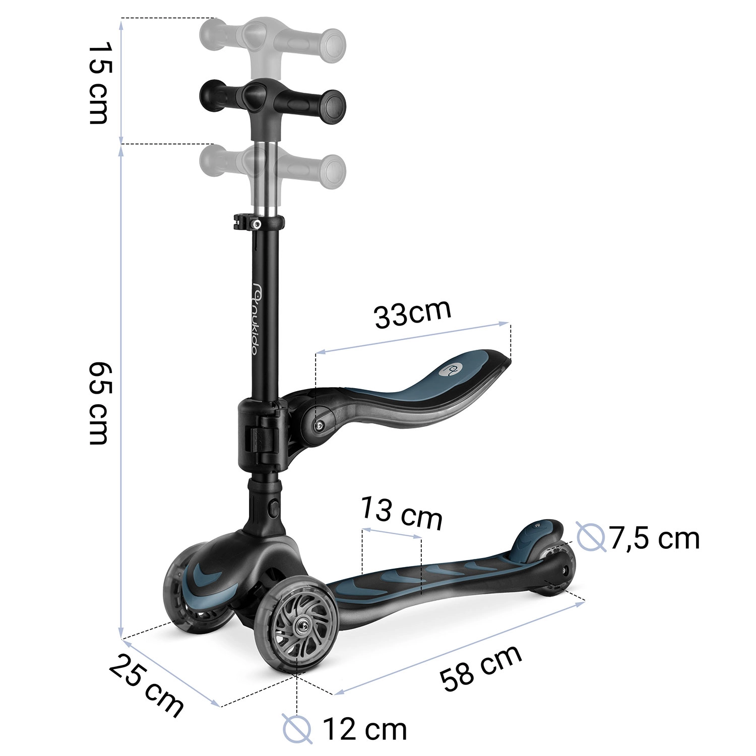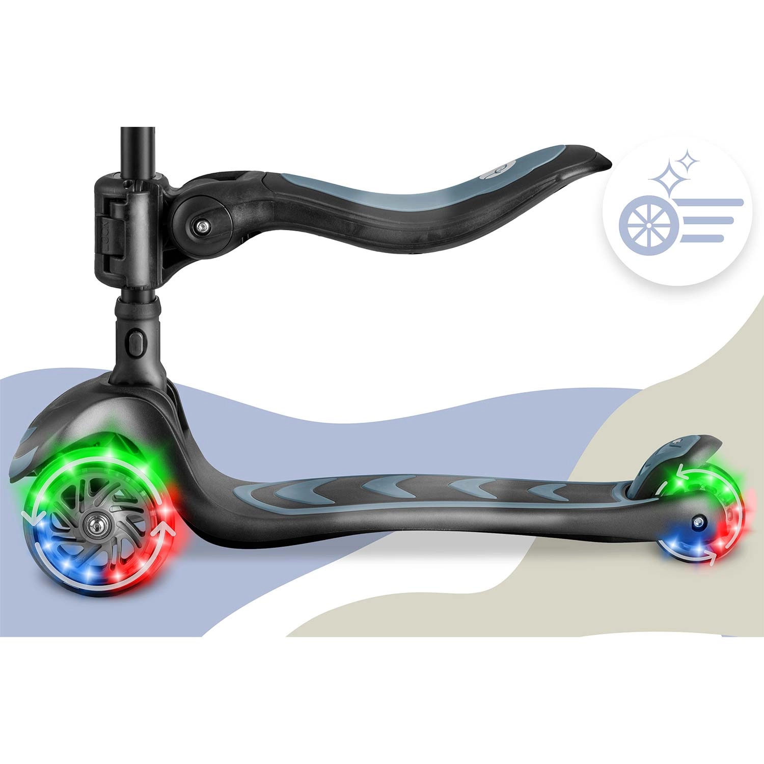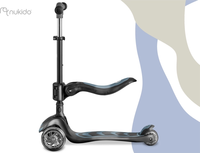 Hulajnoga Nukido Flippo wykorzystuje intuicyjny system balansowy – skręcanie odbywa się przez pochylanie ciała, a nie obrót kierownicy. Dzieci szybko opanowują technikę jazdy, jednocześnie rozwijając równowagę i koordynację. Trzy kółka zapewniają znakomitą stabilność także przy niższych prędkościach, dzięki czemu hulajnoga świetnie sprawdza się dla początkujących.
