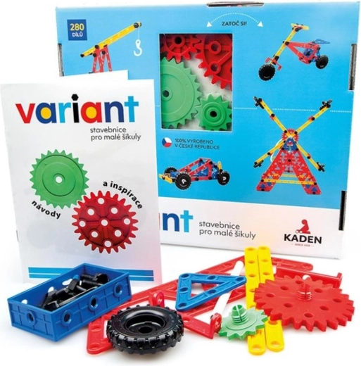 Odkryj kreatywny świat z plastikową konstrukcyjną zabawką Variant o 280 elementach, która rozwija małą motorykę, wyobraźnię przestrzenną oraz logiczne myślenie. Dzięki solidnym śrubkom i nakrętkom, dużym perforowanym panelom oraz kołom zębatym z łańcuchem dzieci zbudują auta, samoloty i statki – i to wielokrotnie.