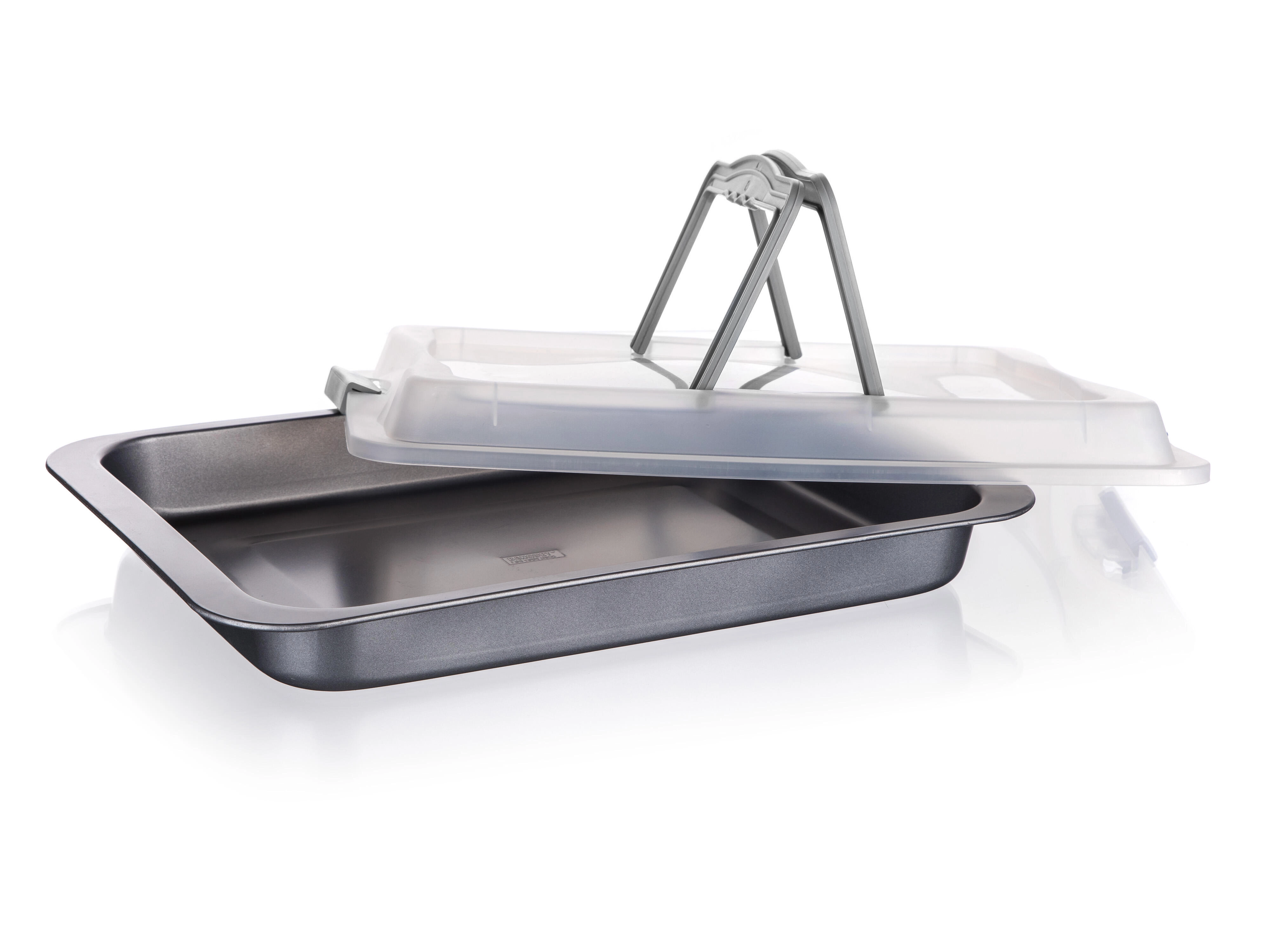 Ciesz się równomiernym pieczeniem i wygodną obsługą dzięki uniwersalnej blaszce ze stali węglowej. Dzięki nieprzywierającej powłoce XYNFLON (PTFE) z łatwością wyjmiesz ciasta, mięso i warzywa bez przypalania i z minimalną ilością tłuszczu. Plastowa pokrywka sprawdzi się podczas przechowywania w lodówce oraz przenoszenia na piknik czy wizytę.