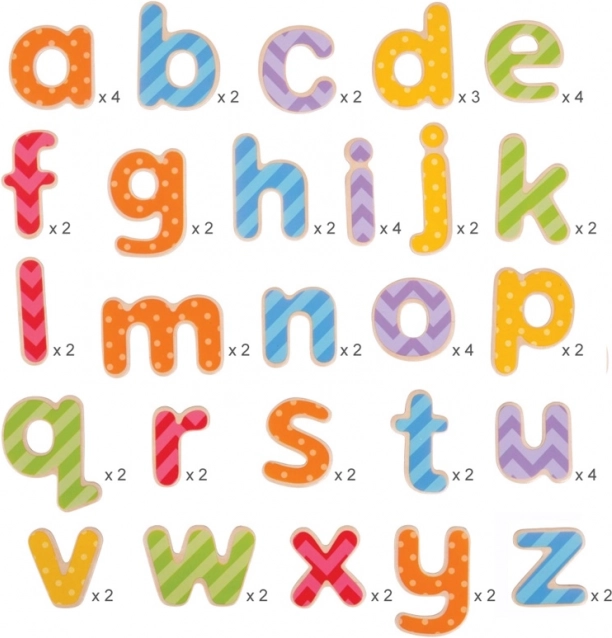 Te kolorowe litery magnetyczne wykonane są z wysokiej jakości drewna i wyposażone w magnes, co czyni je idealnymi do użycia na tablicach. Pomagają dzieciom rozpoznawać litery, rozwijać umiejętności ortograficzne i tworzyć własne słowa i zdania.