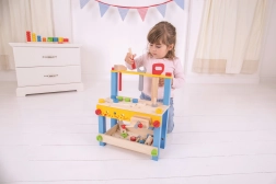 - Rozwija koordynację i małą motorykę dzięki wkręcaniu, wbijaniu i mierzeniu.