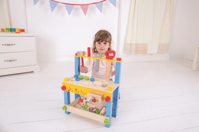 Ten kolorowy drewniany stół warsztatowy BIGJIGS TOYS to świetny start w świat narzędzi. Dzięki realistycznym elementom i bezpiecznym drewnianym narzędziom dzieci ćwiczą praktyczne umiejętności i poznają podstawy pracy z narzędziami – w sposób zabawny i bezpieczny.