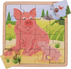 Drewniane puzzle BIGJIGS TOYS – świnka z prosiaczkiem, 16 elementów