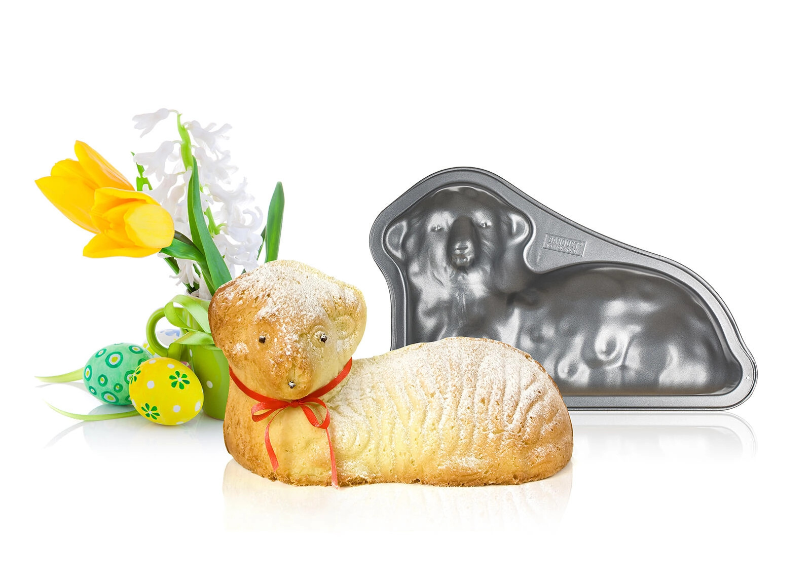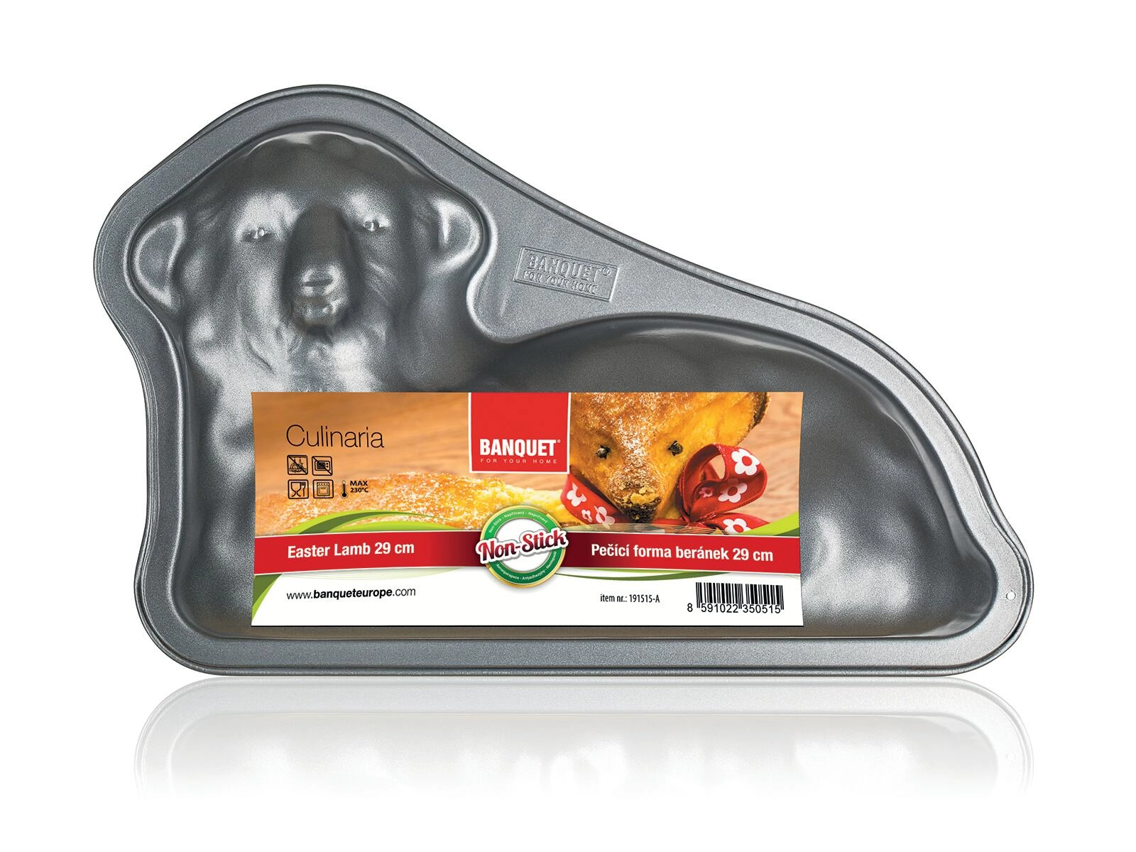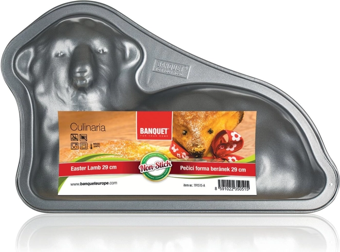 Upiecz efektownego wielkanocnego baranka z formą CULINARIA o wymiarach 29,3 × 19,2 × 7,6 cm. Wytrzymała stal węglowa o grubości 0,5 mm gwarantuje stabilność i równomierne pieczenie, a powłoka XYNFLON na bazie PTFE chroni przed przywieraniem i umożliwia szybkie wyjęcie deseru.