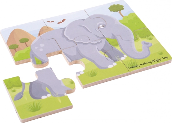 Zestaw zawiera 3 układanki z motywami lwa, zebry i słonia – idealne do stopniowej nauki i urozmaiconej zabawy.
