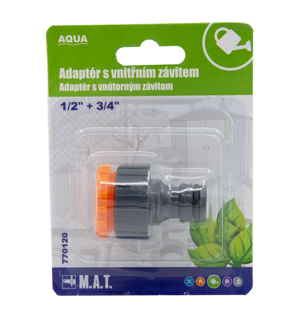 Adapter z gwintem wewnętrznym AQUA to praktyczne rozwiązanie do łączenia węży z kranami lub instalacjami wodnymi. Dzięki dwóm popularnym rozmiarom gwintów 1/2" i 3/4" obejmuje większość zastosowań domowych i ogrodowych oraz ułatwia montaż systemów nawadniania.