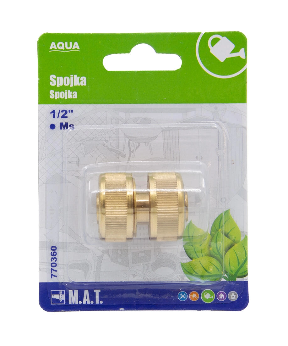 Uniwersalna złączka AQUA z wysokiej jakości mosiądzu do węży ogrodowych o średnicy 1/2". Oferuje odporność na korozję, niezawodne połączenie oraz długą żywotność do codziennego użytku w ogrodzie.