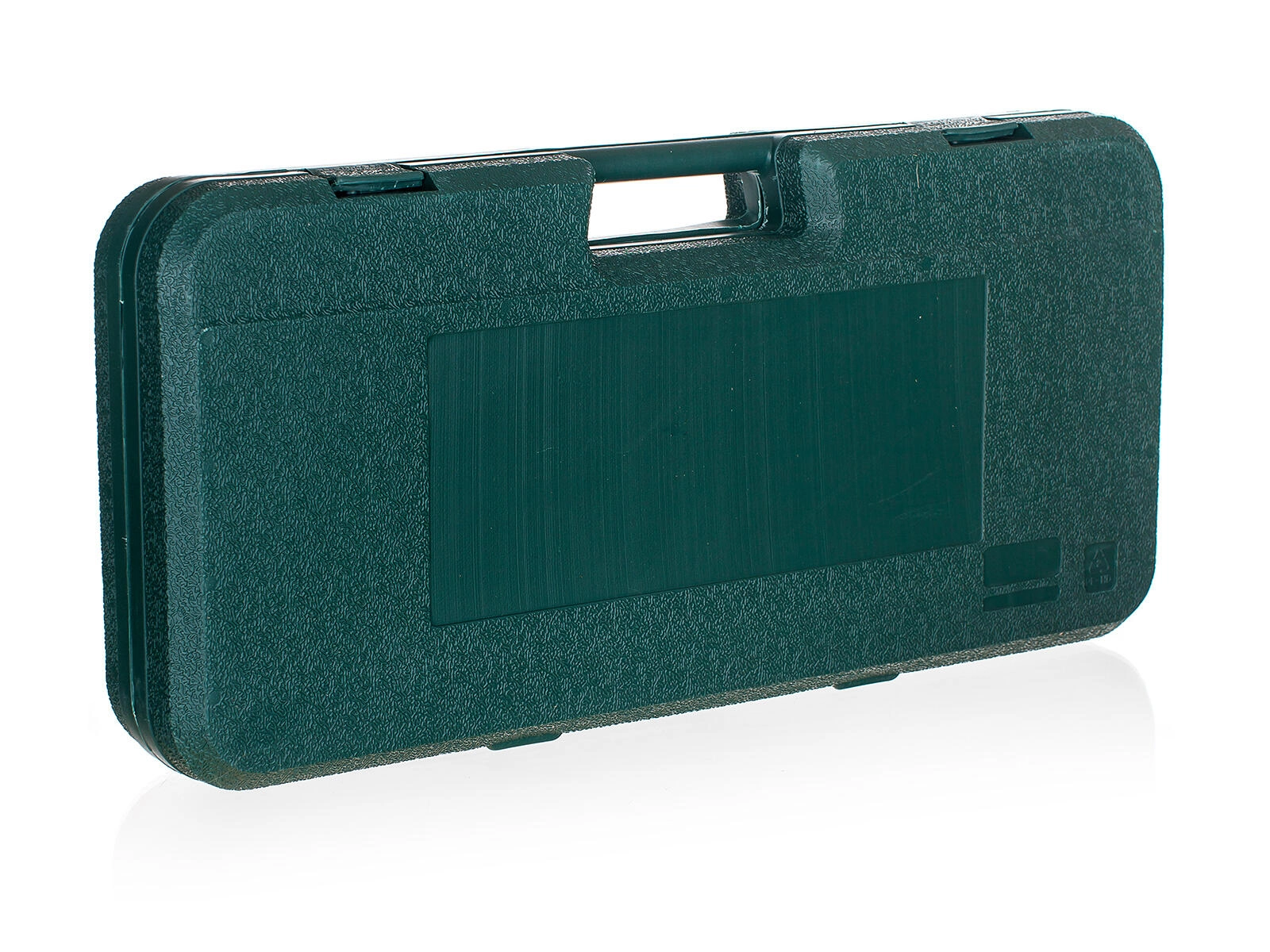 Profilowane przegrody utrzymują każde narzędzie na swoim miejscu. Walizka chroni akcesoria i ułatwia przenoszenie do ogrodu, na taras i w podróży.