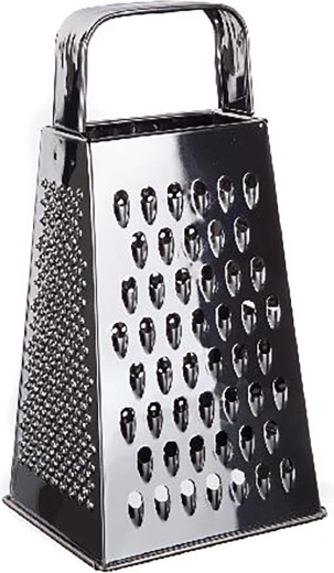 Praktyczna nierdzewna czterostronna tarka w kształcie litery A do codziennego krojenia, tarcia i szatkowania. Oferuje kilka rodzajów powierzchni do uniwersalnego zastosowania, jest stabilna podczas pracy i łatwa w czyszczeniu. Idealna do sera, warzyw i owoców, z trwałym wykonaniem ze stali nierdzewnej dla długiej żywotności.