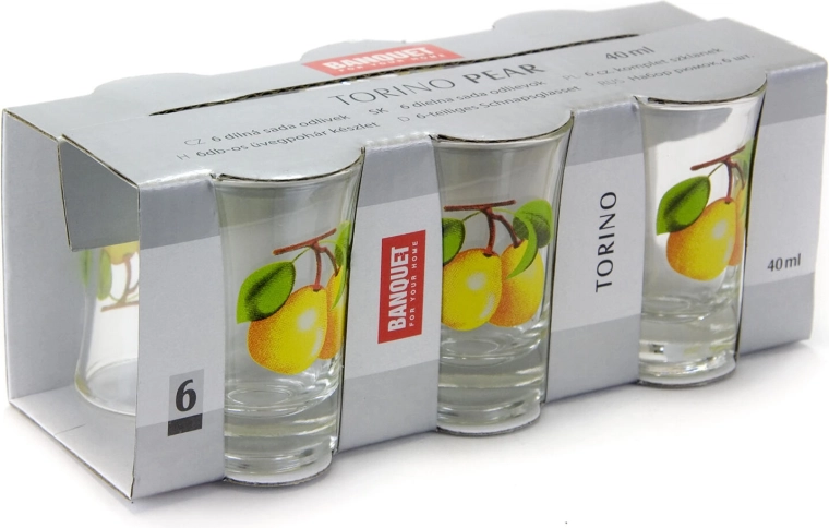 Stylowa szklana kieliszka z motywem gruszki o pojemności 40 ml w praktycznym opakowaniu 6 sztuk. Idealna do serwowania destylatów w domu, pubie i restauracji. Wyróżnia się tradycyjnym designem, kompaktowym rozmiarem i uniwersalnym zastosowaniem.