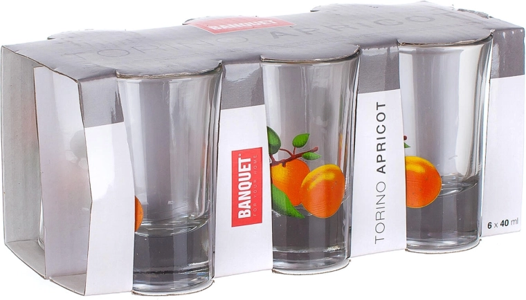 Stylowy szklany kieliszek o pojemności 40 ml z subtelnym motywem moreli jest idealny do serwowania destylatów i likierów. Wyróżnia się kompaktowymi wymiarami, wysoką jakością wykonania oraz uniwersalnym zastosowaniem w restauracji, pubie i w domu. Praktyczne opakowanie po 6 sztuk ucieszy każdego miłośnika klasyki i designu. Tradycyjny wygląd, motyw moreli, pojemność 40 ml, opakowanie 6 szt..