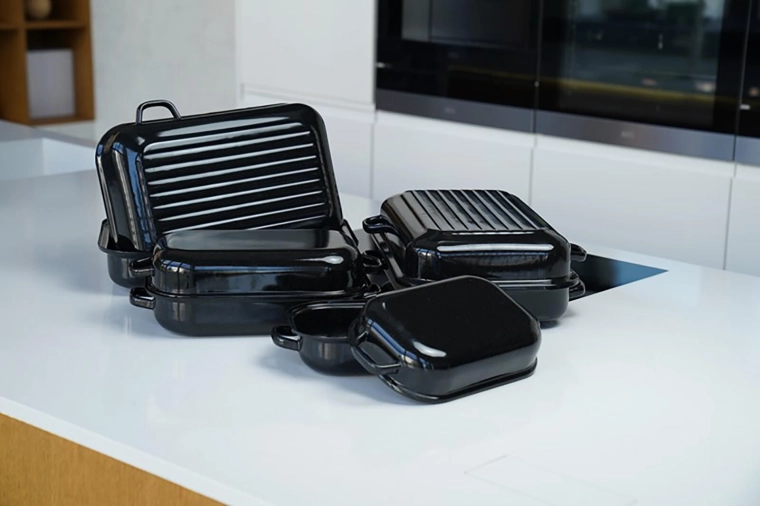 Gładka emaliowana powierzchnia jest trwała, nieporowata i łatwa w czyszczeniu – odpowiednia do zmywarki i bezpieczna dla alergików.