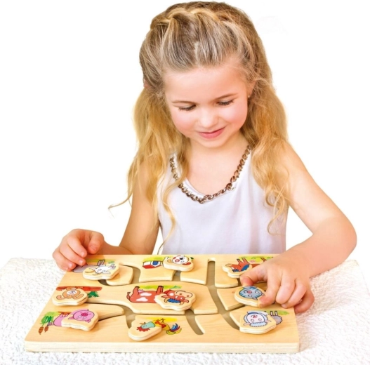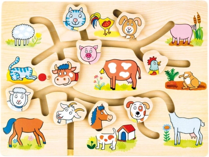 Odkryj urok tej drewnianej układanki z motywem gospodarstwa domowego, która została zaprojektowana do wspierania rozwoju dzieci. Labirynt ma na celu zabawny i interaktywny sposób pomóc poprawić drobną motorykę i koordynację wzrokowo-ruchową. Dzieci nie tylko uczą się rozpoznawać poszczególne zwierzęta, ale także doskonalą orientację przestrzenną i myślenie logiczne.