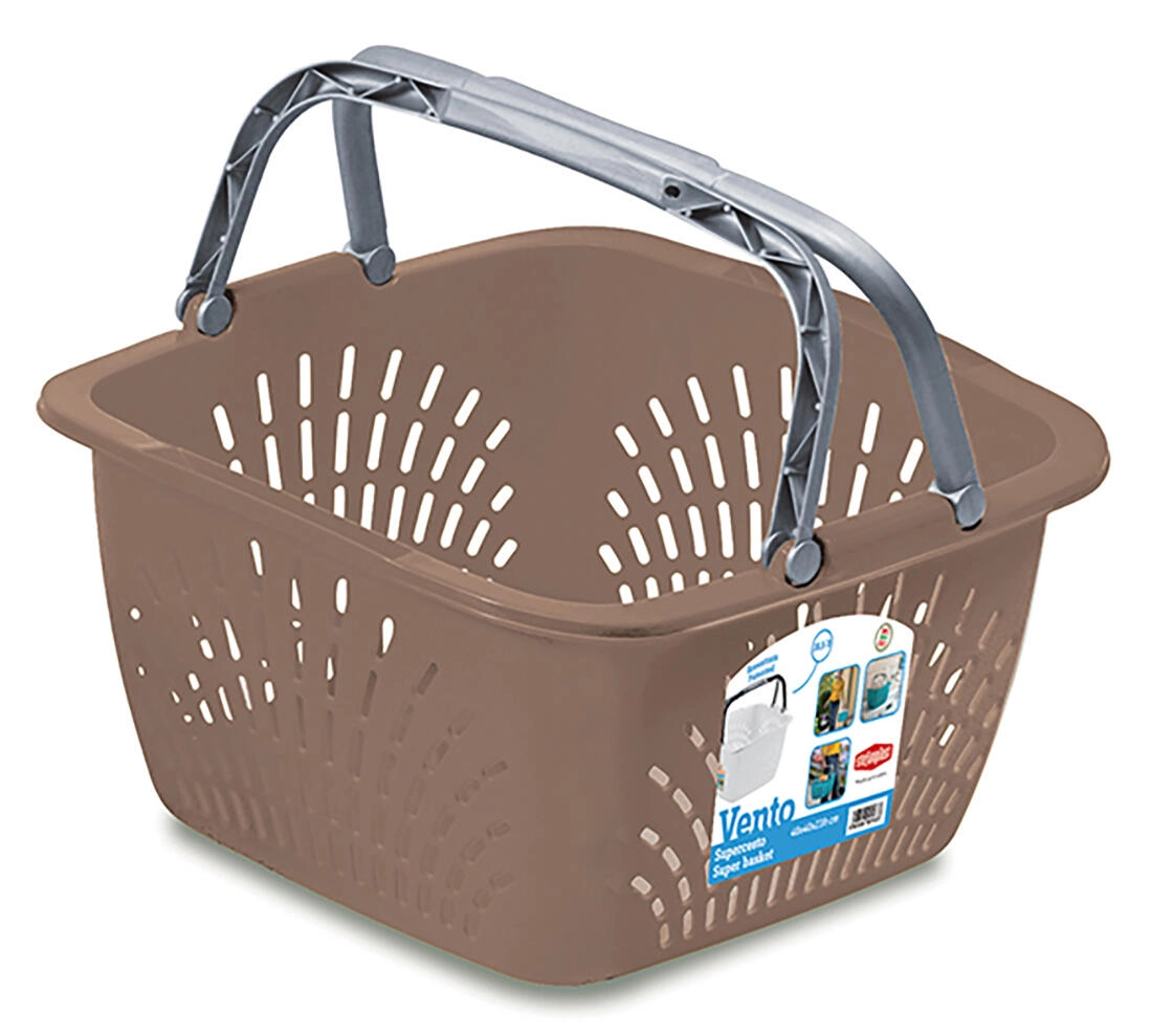 Praktyczny i wytrzymały koszyk na zakupy VENTO ułatwia codzienne zakupy i przenoszenie rzeczy w domu. Oferuje 2 składane uchwyty dla wygodnego noszenia, pojemność 18,5 l oraz udźwig do 15 kg. Lekki plastowy korpus z otworami wentylacyjnymi zapewnia trwałość, łatwą pielęgnację i przewiewność zawartości. Dostępny w miksie kolorów, aby dopasować do Twojego stylu.
