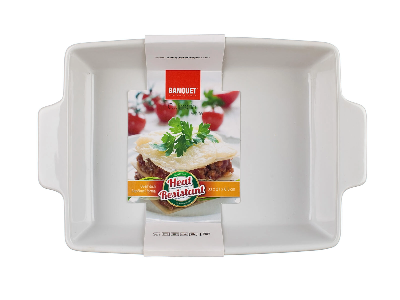 Ceramika doskonale akumuluje ciepło i zapewnia równomierne wypieczenie potraw. Boczne uchwyty ułatwiają bezpieczne przenoszenie z piekarnika na stół. Forma nadaje się do pieczenia w temperaturze do 240 °C, co pokrywa większość przepisów do domowego pieczenia i zapiekania.