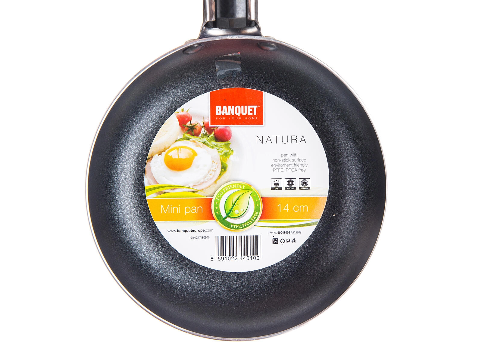 Mini patelnia Natura 14 cm jest idealna do mniejszych kuchni, na szybkie śniadania i gotowanie dla jednej osoby. Nieprzywierająca, dwuwarstwowa powłoka zapewnia gładkie smażenie z minimalną ilością tłuszczu oraz wygodne czyszczenie. Dzięki lekkiej konstrukcji i wygodnemu uchwytowi obsługa jest łatwa i bezpieczna.