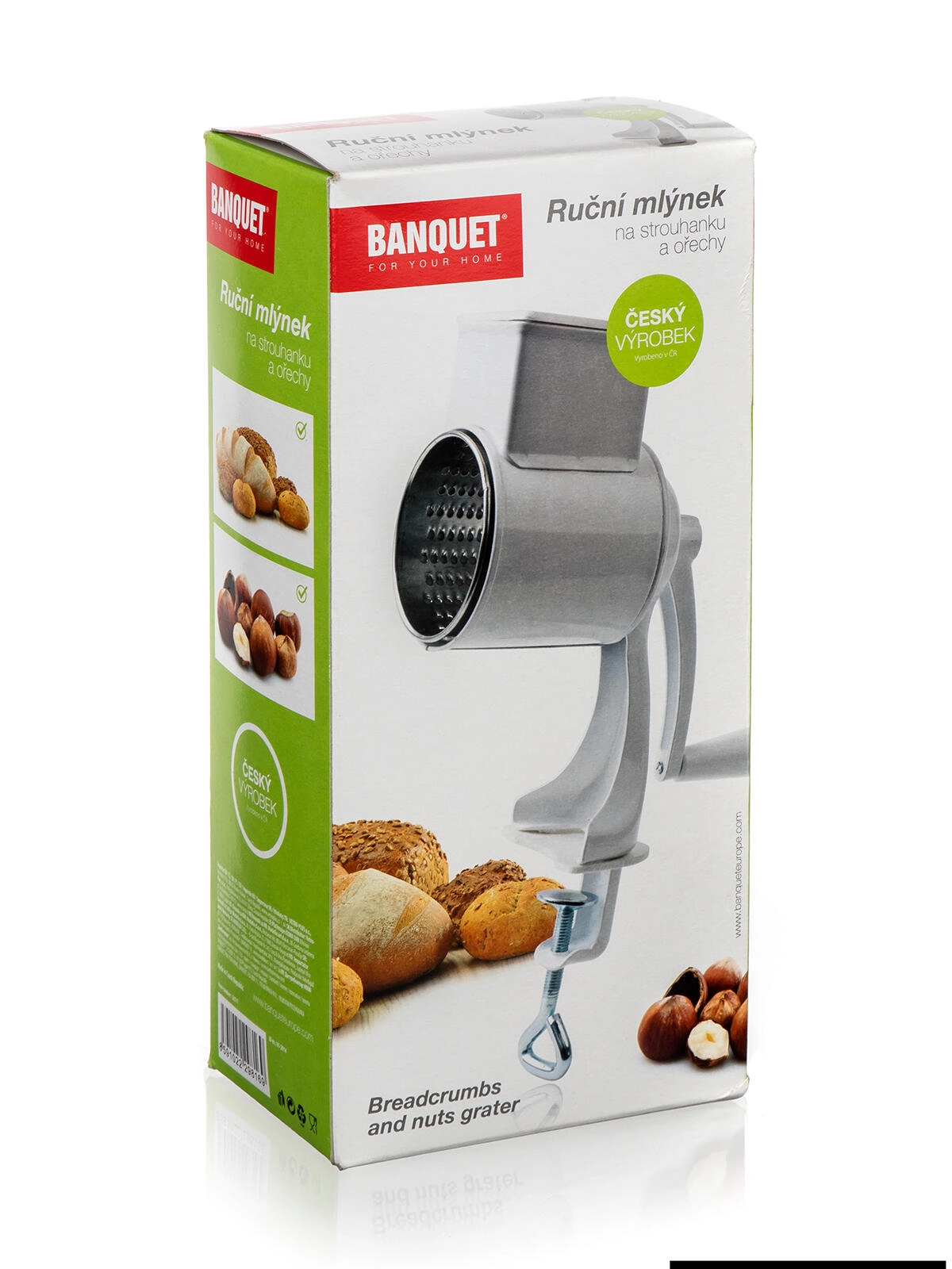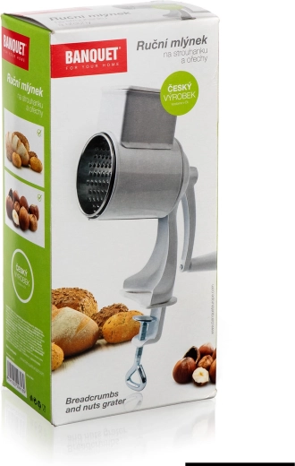 Ręczny młynek do bułki tartej BANQUET jest idealny do codziennego użytku – od drobnej bułki tartej z pieczywa po szybkie tarcie twardych serów i orzechów. Metalowy korpus z wytrzymałą powłoką oraz ocynkowany bęben gwarantują długą żywotność i łatwą konserwację.