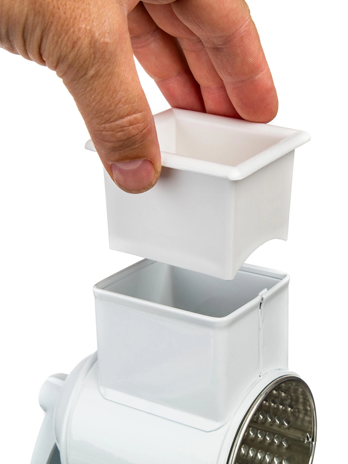 Tradycyjny ręczny młynek do bułki tartej z solidnym metalowym korpusem i bębnem z ocynkowanej blachy zapewnia szybkie i równomierne tarcie pieczywa, serów czy orzechów. Dzięki praktycznemu śrubowemu mocowaniu do stołu praca jest stabilna i bezpieczna. Wysoka jakość wykonania, powłoka proszkowa w białym odcieniu oraz rzetelna produkcja w Czechach czynią z tego młynka niezawodnego pomocnika do każdej kuchni.