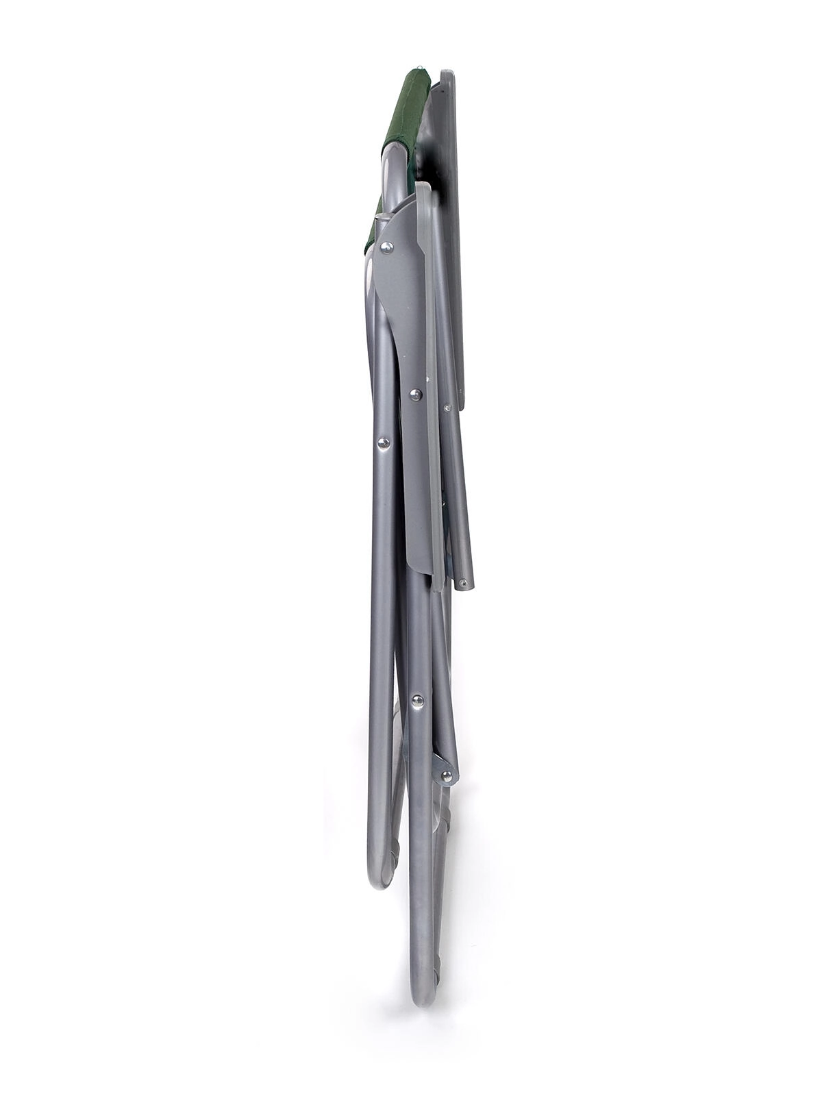 Krzesło szybko się rozkłada i składa, więc z łatwością je przechowasz nawet w mniejszych przestrzeniach. Zielone wykończenie pasuje do naturalnego otoczenia i współgra z większością mebli ogrodowych.
