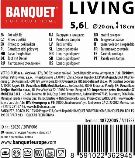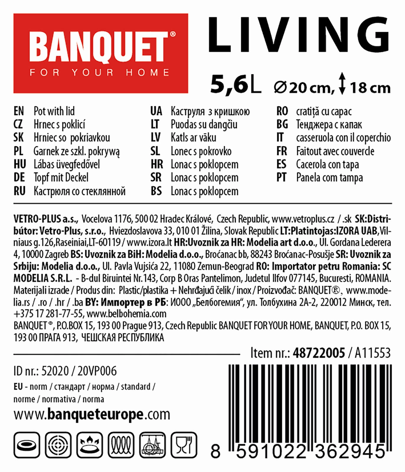 Praktyczny i elegancki garnek LIVING ze stali nierdzewnej o pojemności 5,6 l i średnicy 20 cm jest idealny do codziennego gotowania. Oferuje trwałe wykonanie ze stali nierdzewnej, szklaną pokrywkę z nierdzewnym uchwytem, błyszczącą powierzchnię z matowymi pasami oraz uniwersalne zastosowanie na wszystkich typach kuchenek, w tym indukcyjnych.